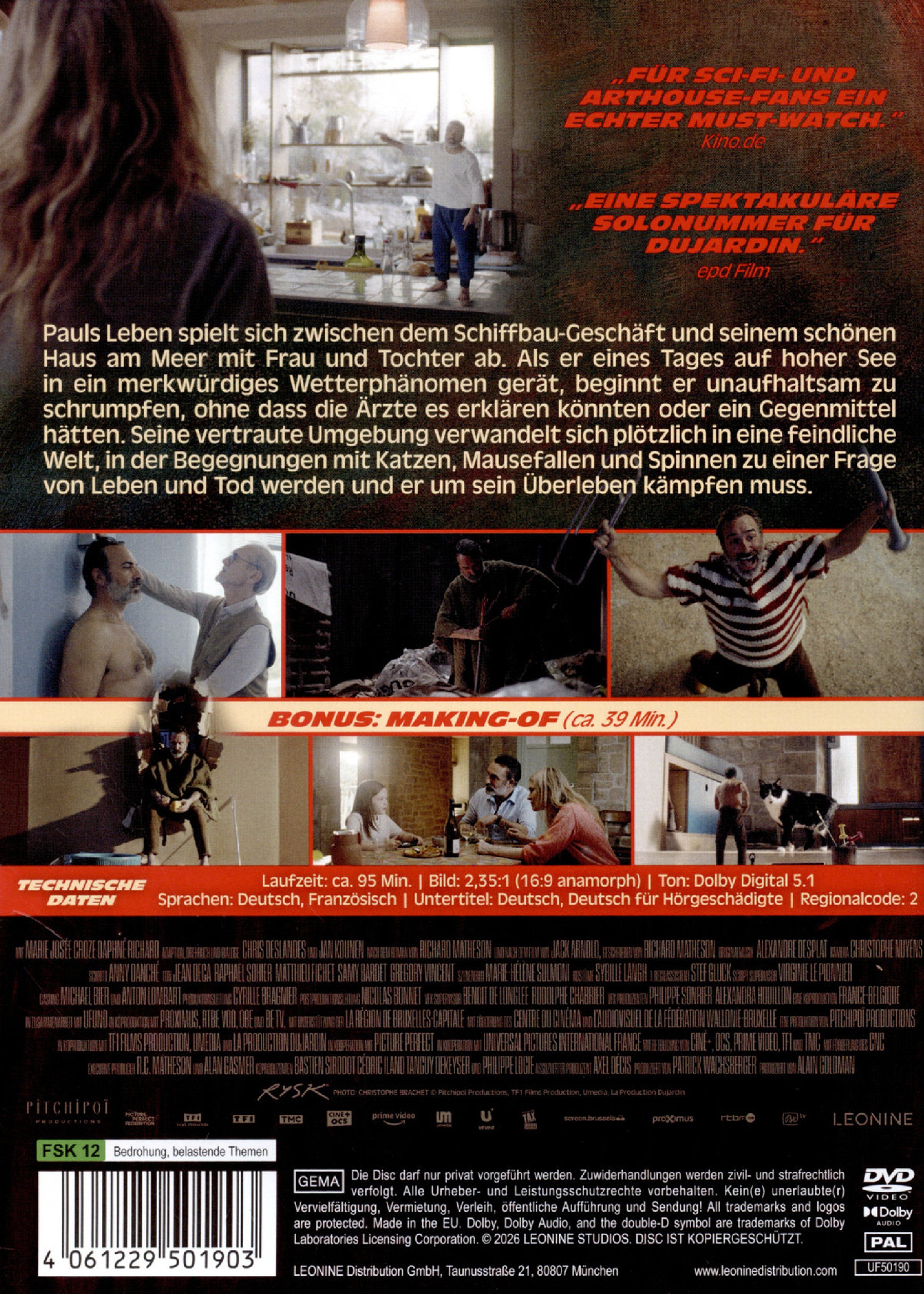 Pauls Leben spielt sich zwischen dem Schiffbau-Geschäft und seinem schönen Haus am Meer mit Frau und Tochter ab. Als er eines Tages auf hoher See in ein merkwürdiges Wetterphänomen gerät, beginnt er unaufhaltsam zu schrumpfen, ohne dass die Ärzte es erklären könnten oder ein Gegenmittel hätten. Seine vertraute Umgebung verwandelt sich plötzlich in eine feindliche Welt, in der Begegnungen mit Katzen, Mausefallen und Spinnen zu einer Frage von Leben und Tod werden und er um sein Überleben kämpfen muss.