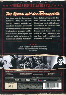 Der Mann mit der Totenmaske (Crimson Ghost) ist ein Verbrecher, dessen Identität niemandem bekannt ist. Er versucht in den Besitz der Strahlenkanone Cyclotrode zu gelangen und befiehlt seinen Handlangern, die tödliche Waffe zu besorgen. Er kommuniziert über Radiofunk. Seine Lakaien tragen ein Halsband, welches den Träger bei Missachten von Befehlen ferngesteuert tötet. Das Halsband dient auch als Sprengfalle. Duncan und Diana sind dem Mann mit der Totenmaske auf der Spur und versuchen, sein Vorhaben zu vereiteln.