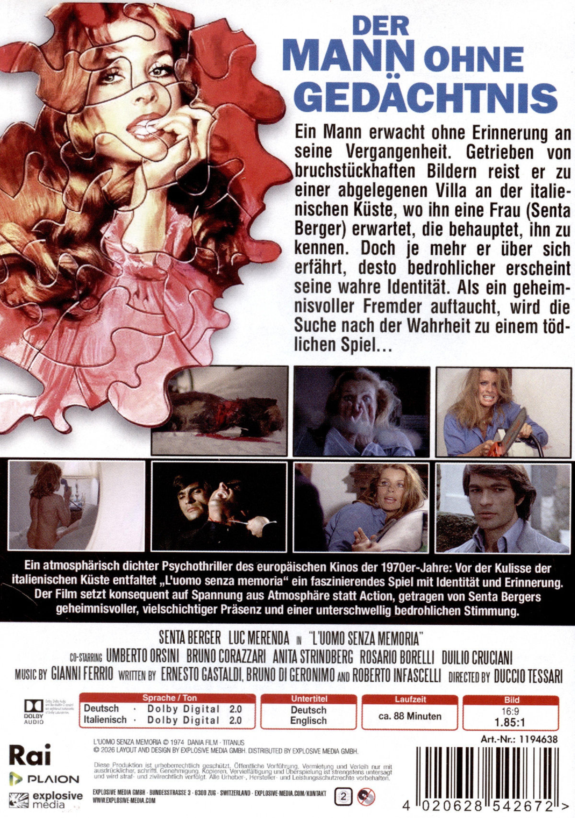 Ein Thriller über Erinnerung, Schuld und eine Vergangenheit, die sich nicht begraben lässt. »Der Mann ohne Gedächtnis« ist ein eleganter, ruhig erzählter Giallo von Duccio Tessari, der mehr auf psychologische Spannung als auf blutige Schocks setzt. Senta Berger glänzt in einer geheimnisvollen Rolle, Luc Merenda überzeugt als Mann ohne Vergangenheit. Stilvolle Kamera, atmosphärische Kulissen und Gianni Ferrios unheilvoller Score verleihen dem Film eine fast traumartige Note. Ein unterschätzter 70er-Jahre-Thriller mit Klasse.