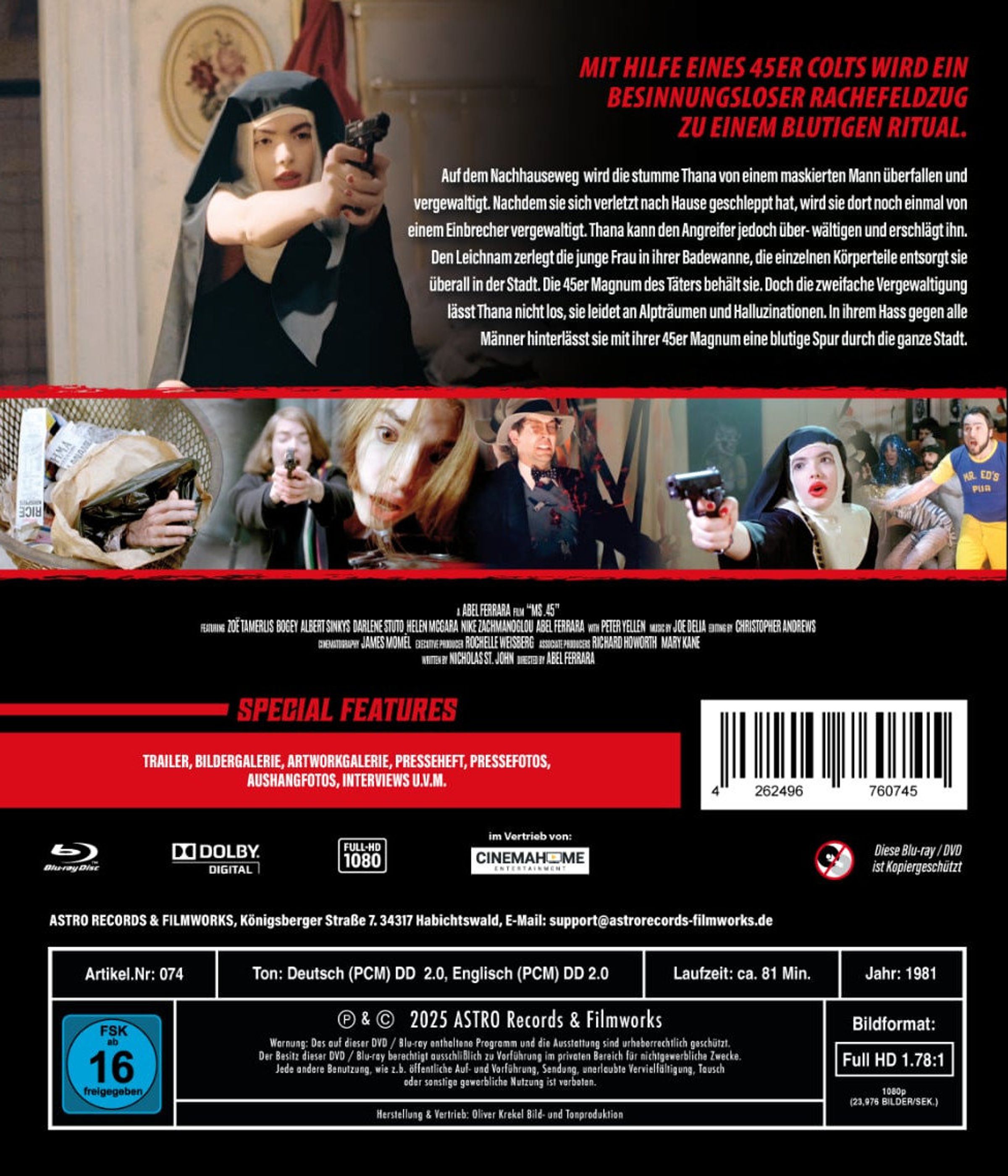 Auf dem Nachhauseweg von ihrer Arbeit in einer New Yorker Näherei wird die stumme Thana von einem maskierten Mann überfallen und vergewaltigt. Nachdem sie sich verletzt nach Hause geschleppt hat, wird sie dort noch einmal von einem Einbrecher vergewaltigt. Thana kann den Angreifer jedoch überwältigen und erschlägt ihn mit einem Bügeleisen. Den Leichnam zerlegt die junge Frau in ihrer Badewanne, die einzelnen Körperteile entsorgt sie überall in der Stadt. Die 45 Magnum des Täters behält sie. Doch die zweifache Vergewaltigung lässt Thana nicht los, sie leidet Alpträumen und Halluzinationen.