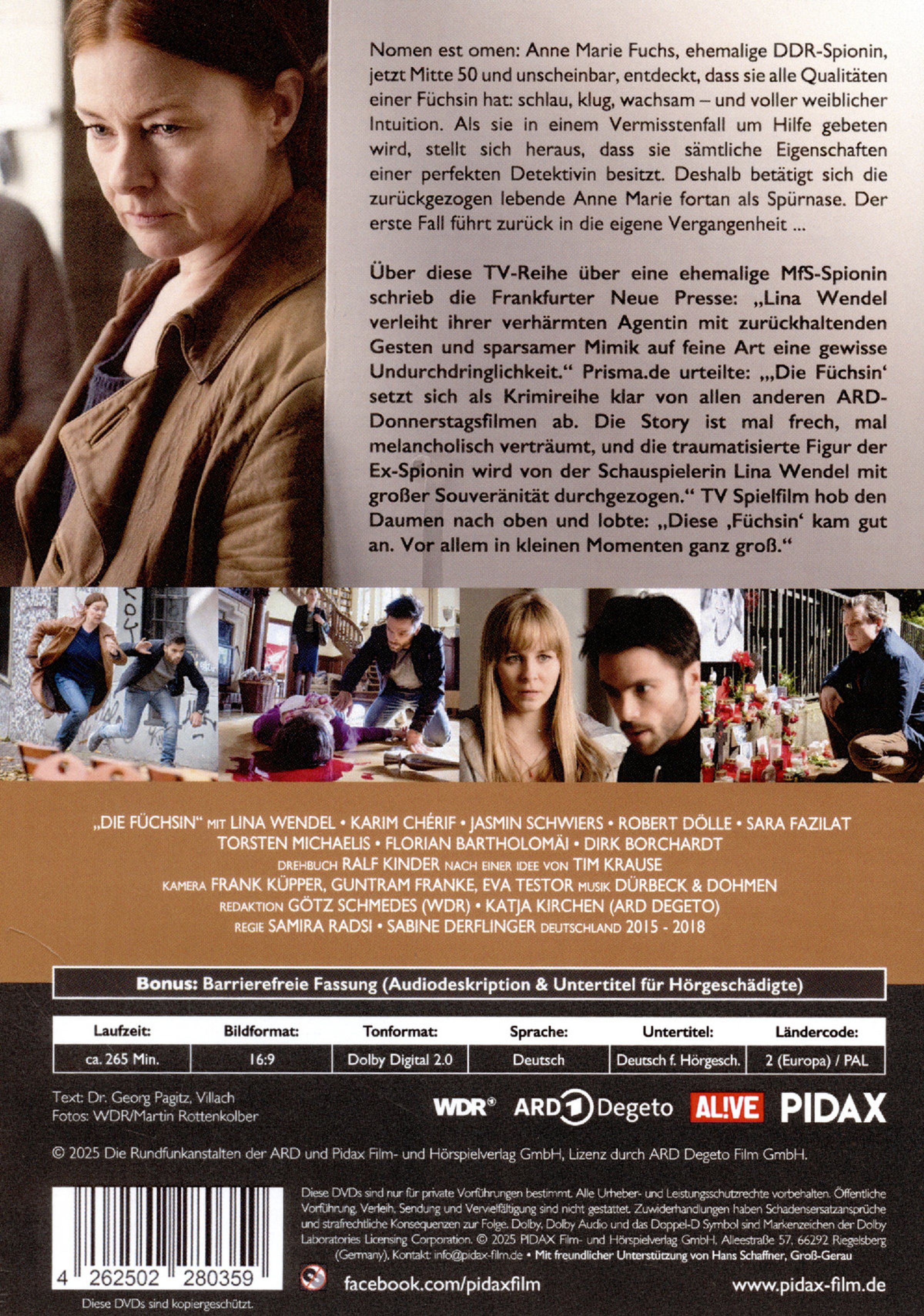 Nomen est omen: Anne Marie Fuchs, ehemalige DDR-Spionin, jetzt Mitte 50 und unscheinbar, entdeckt, dass sie alle Qualitäten einer Füchsin hat: schlau, klug, wachsam – und voller weiblicher Intuition. Als sie in einem Vermisstenfall um Hilfe gebeten wird, stellt sich heraus, dass sie sämtliche Eigenschaften einer perfekten Detektivin besitzt. Deshalb betätigt sich die zurückgezogen lebende Anne Marie fortan als Spürnase. Der erste Fall führt zurück in die eigene Vergangenheit ...