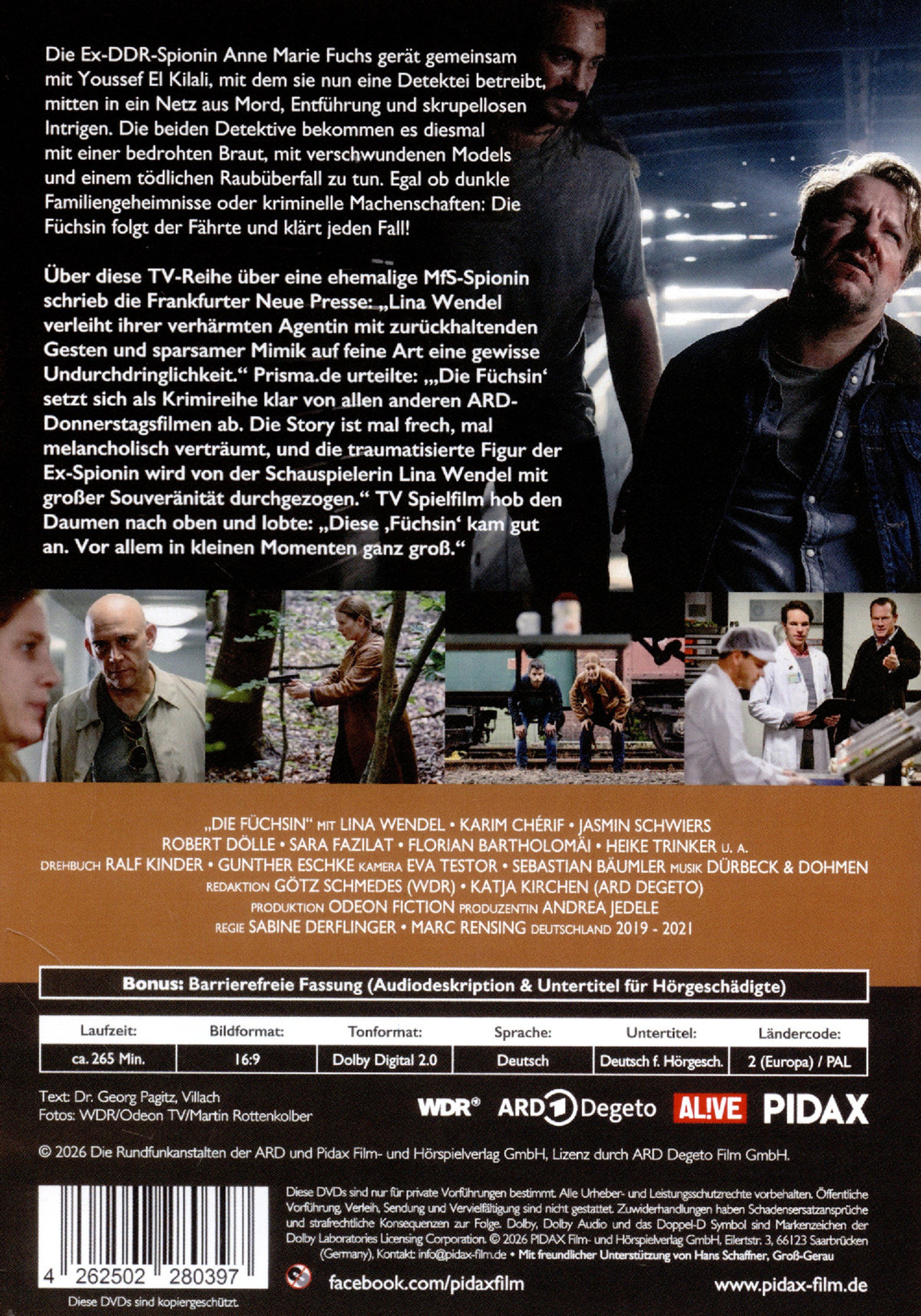 Die Ex-DDR-Spionin Anne Marie Fuchs gerät gemeinsam mit Youssef El Kilali, mit dem sie nun eine Detektei betreibt, mitten in ein Netz aus Mord, Entführung und skrupellosen Intrigen. Die beiden Detektive bekommen es diesmal mit einer bedrohten Braut, mit verschwundenen Models und einem tödlichen Raubüberfall zu tun. Egal ob dunkle Familiengeheimnisse oder kriminelle Machenschaften: Die Füchsin folgt der Fährte und klärt jeden Fall!