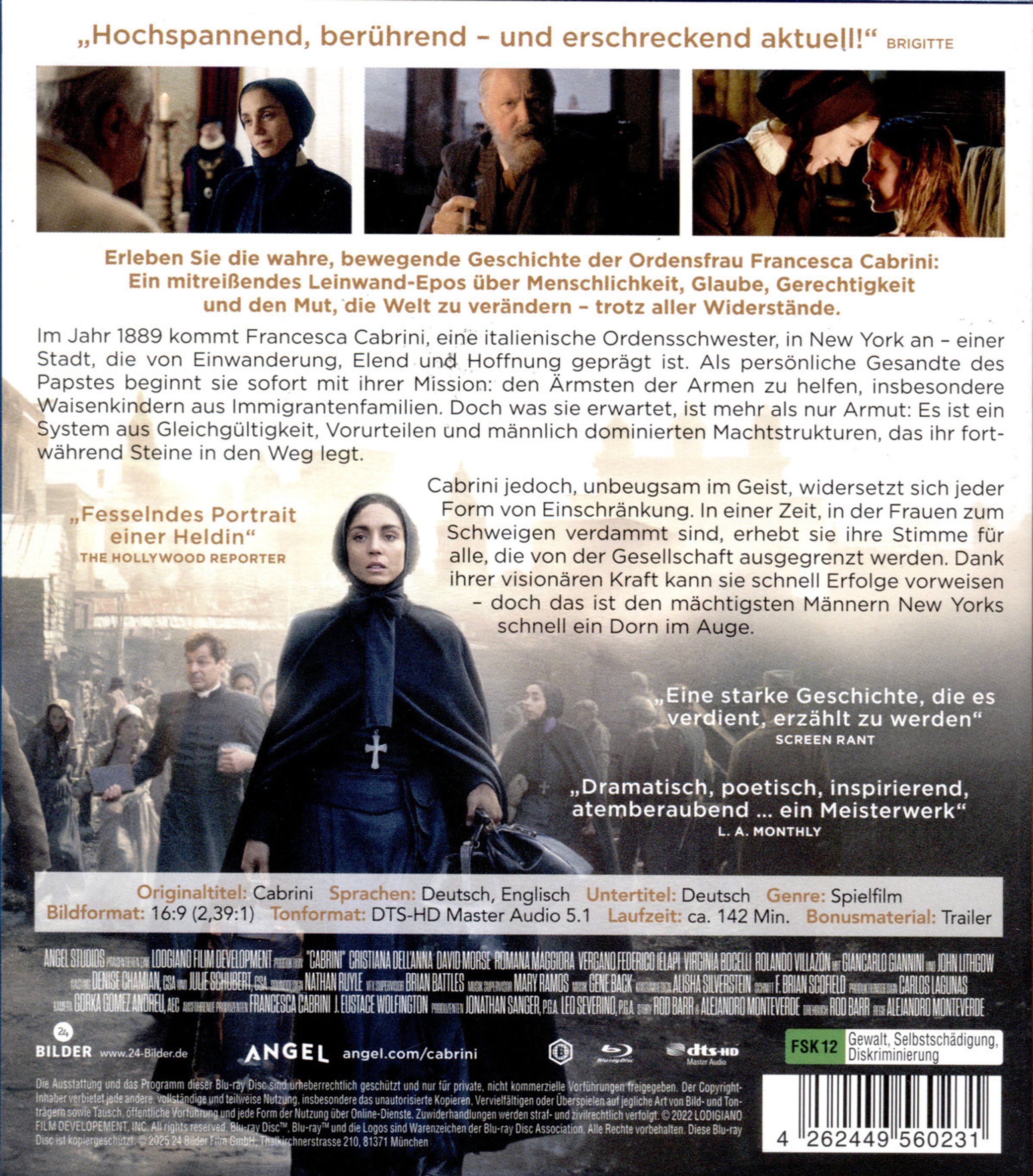 Doch Cabrini, unbeugsam im Geist, widersetzt sich jeder Form von Einschränkung. In einer Zeit, in der Frauen zum Schweigen verdammt sind, erhebt sie ihre Stimme - für die Kranken, die Waisen und für alle, die von der Gesellschaft ausgegrenzt werden. Mit ihrer visionären Kraft kann sie schnell Erfolge vorweisen - doch das ist den mächtigsten Männern New Yorks schnell ein Dorn im Auge.