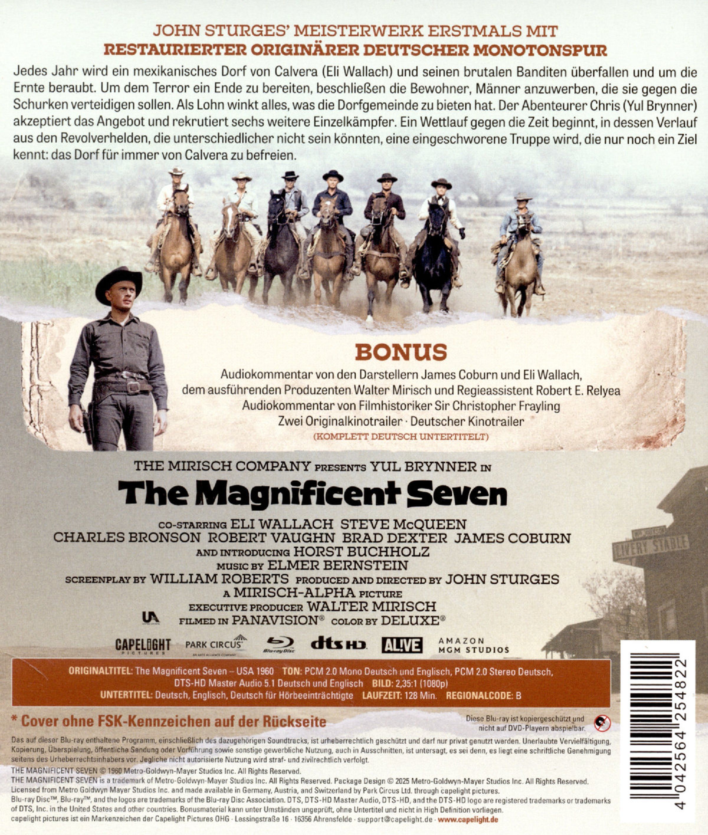 Jedes Jahr wird ein mexikanisches Dorf von Calvera und seinen brutalen Banditen überfallen und um die Ernte beraubt. Um dem Terror ein Ende zu bereiten, beschließen die Bewohner, Männer anzuwerben, die sie gegen die Schurken verteidigen sollen. Als Lohn winkt alles, was die Dorfgemeinde zu bieten hat. Der Abenteurer Chris akzeptiert das Angebot und rekrutiert sechs weitere Einzelkämpfer. Ein Wettlauf gegen die Zeit beginnt, in dessen Verlauf aus den Revolverhelden, die unterschiedlicher nicht sein könnten, eine eingeschworene Truppe wird, die nur noch ein Ziel kennt: das Dorf für immer von Calvera zu befreien.