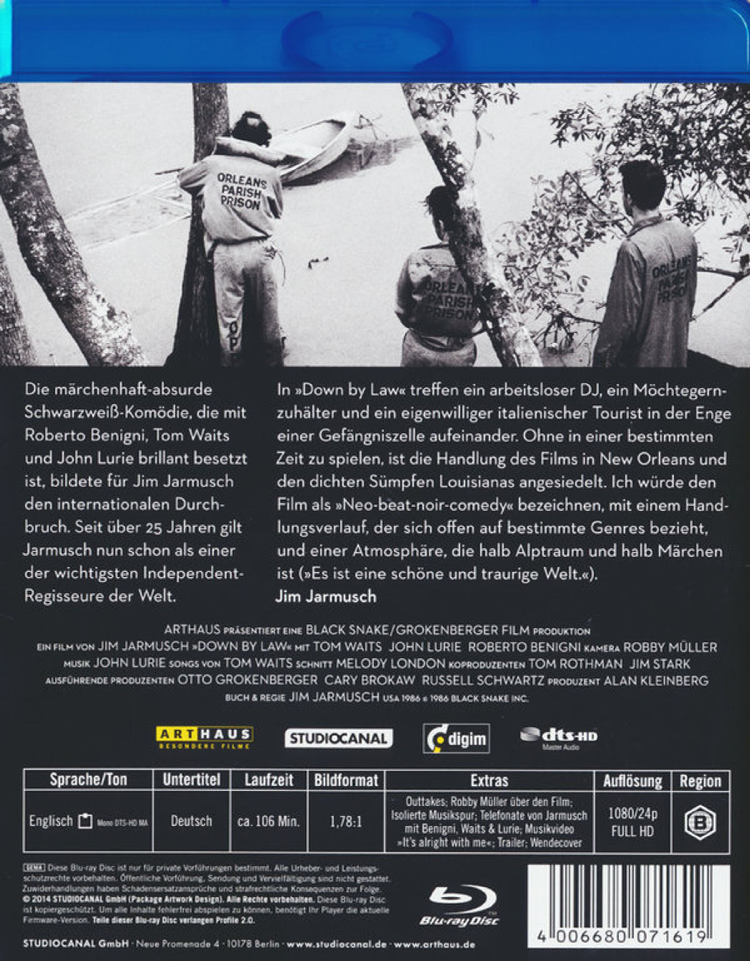- Geschnittene Szenen; Isolierte Musikspur; Musikvideo „It’s Alright With Me”; Robby Müller über DOWN BY LAW; Telefonate von Jim Jarmusch mit Benigni, Waits und Lurie