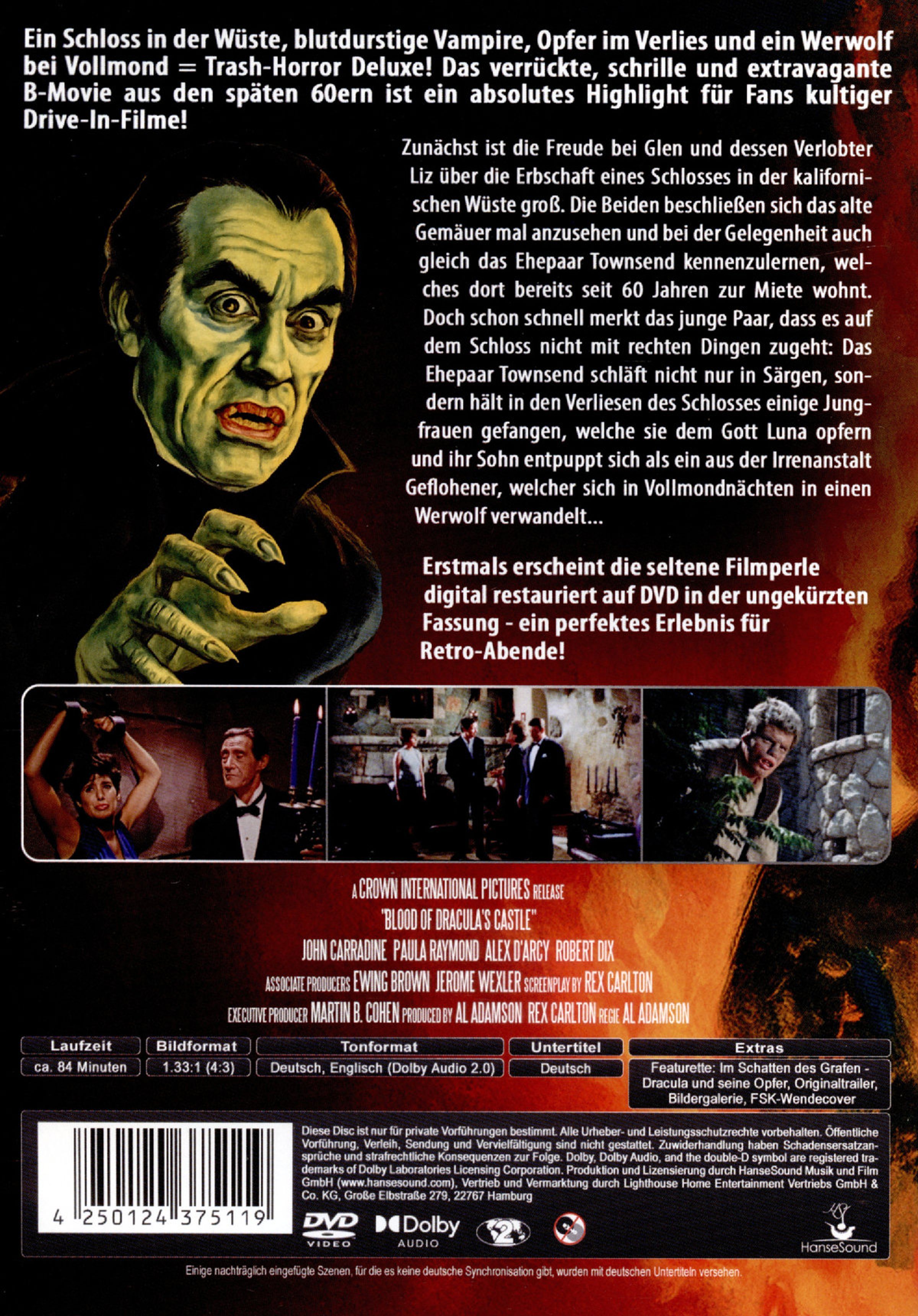 Glen und seine Verlobte Liz freuen sich über die Erbschaft eines Schlosses in der kalifornischen Wüste. Vor Ort treffen sie Graf und Gräfin Townsend, die seit 60 Jahren dort leben. Bald erkennen sie das Grauen: Die Townsends schlafen in Särgen und halten Jungfrauen gefangen, um sie Gott Luna zu opfern. Als wäre das nicht genug, verwandelt sich ihr Sohn bei Vollmond in einen Werwolf...