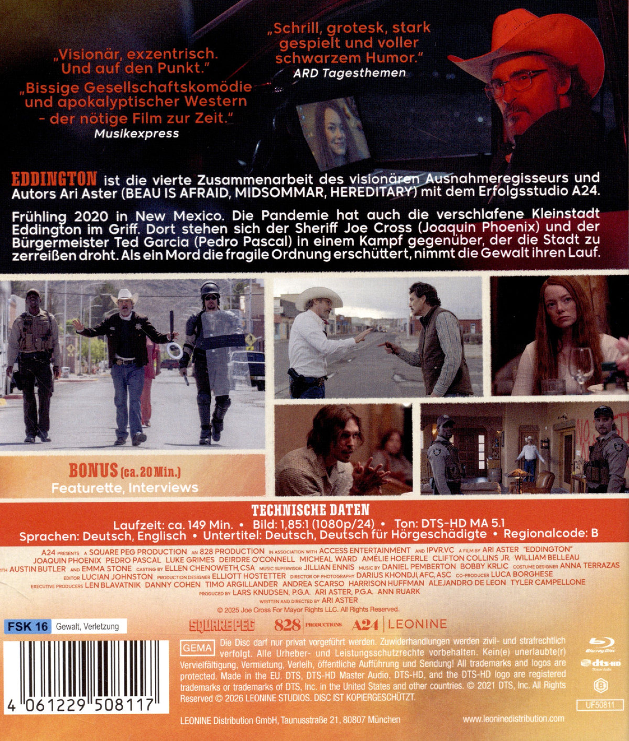 Frühling 2020 in New Mexico. Die Pandemie hat auch die verschlafene Kleinstadt Eddington im Griff. Dort stehen sich der Sheriff Joe Cross und der Bürgermeister Ted Garcia in einem Kampf gegenüber, der die Stadt zu zerreißen droht. Als ein Mord die fragile Ordnung erschüttert, nimmt die Gewalt ihren Lauf.
