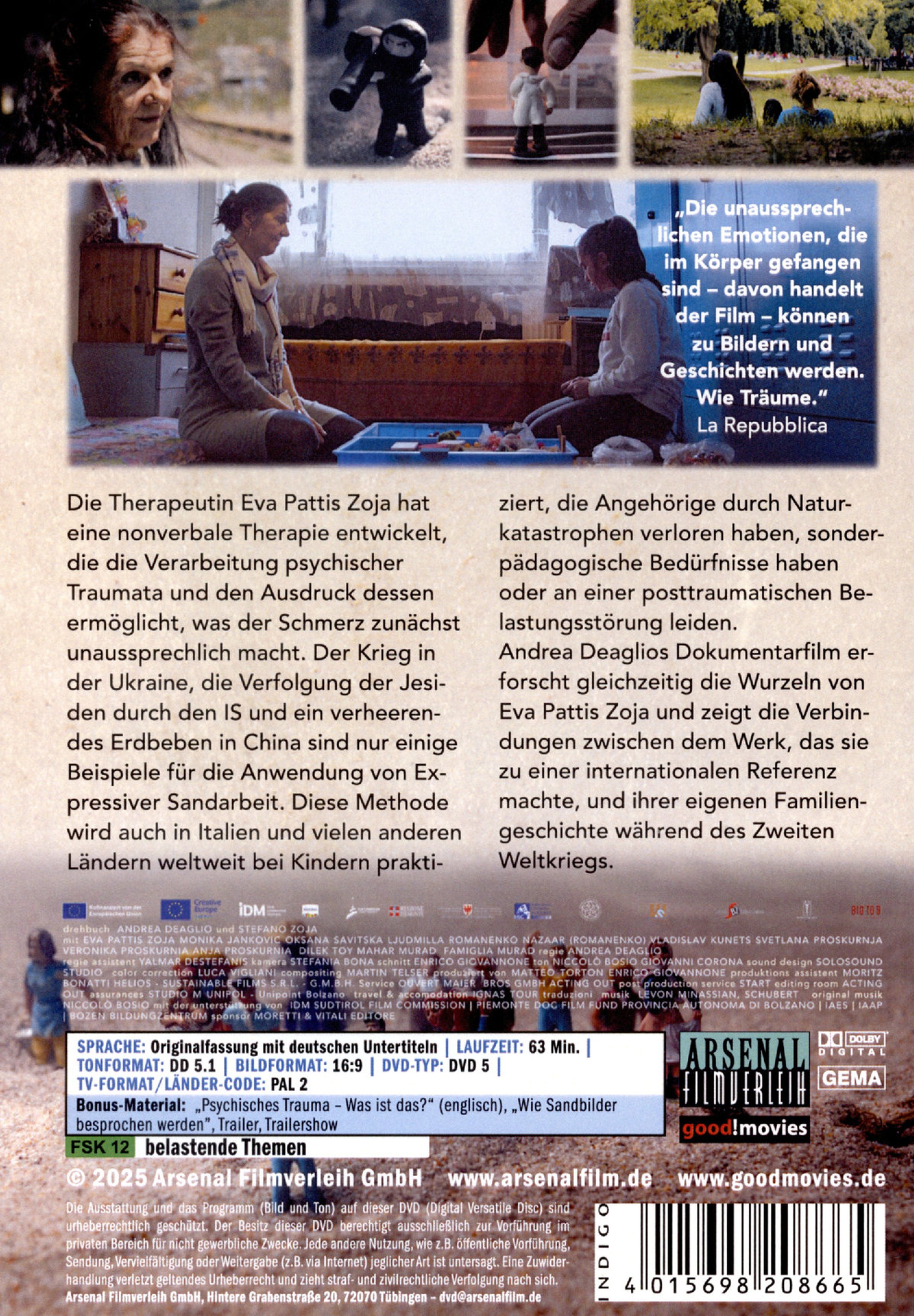 Eine Million Sandkörnchen begleitet die Psychotherpeutin Eva Pattis Zoja auf ihrem ungewöhnlichen Weg im Engagement für psychische Notsituationen. Ein Erdbeben in China, der Genozid an der jesidischen Bevölkerung im Irak, der Krieg in der Ukraine. Eine innovative Therapiemethode hilft den Opfern psychischer Traumata das Unsagbare ihres Erlebens auch ohne Worte auszudrücken.