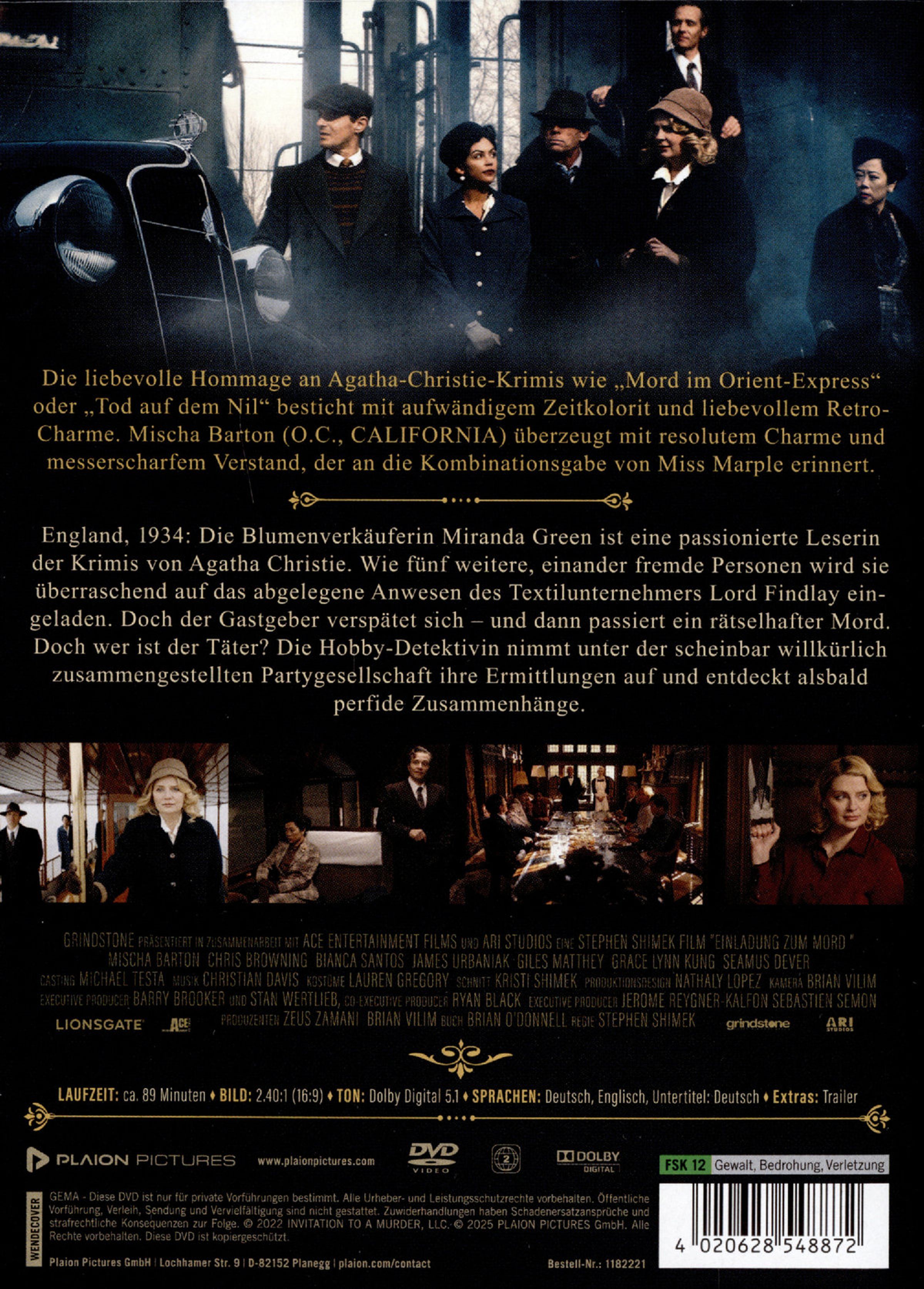 England, 1934: Die Blumenverkäuferin Miranda Green ist eine passionierte Leserin der Krimis von Agatha Christie. Wie fünf weitere, einander fremde Personen wird sie überraschend auf das abgelegene Anwesen des Textilunternehmers Lord Findlay eingeladen. Doch der Gastgeber verspätet sich – und dann passiert ein rätselhafter Mord. Doch wer ist der Täter? Die Hobby-Detektivin nimmt unter der scheinbar willkürlich zusammengestellten Partygesellschaft ihre Ermittlungen auf und entdeckt alsbald perfide Zusammenhänge.