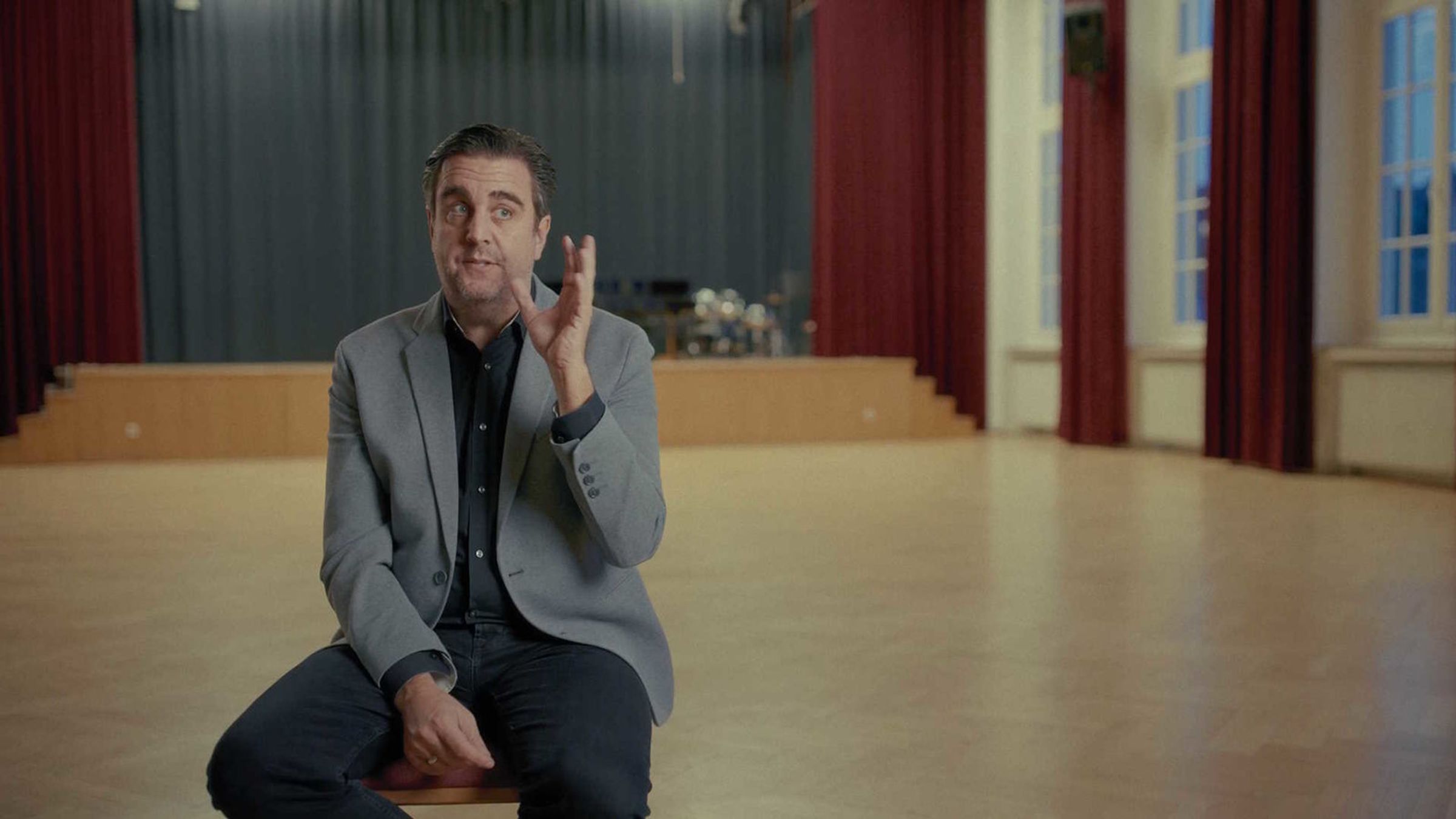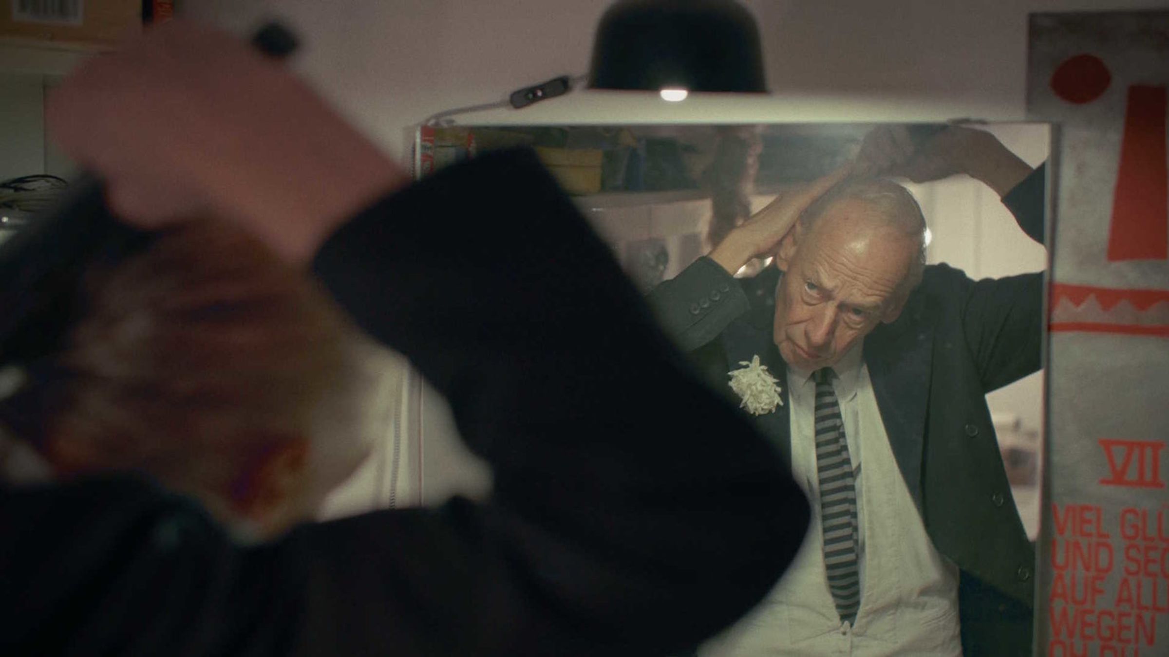 Gestalt seiner Figur Fritz Litzmann auf der Bühne steht. Der Film ergründet die
