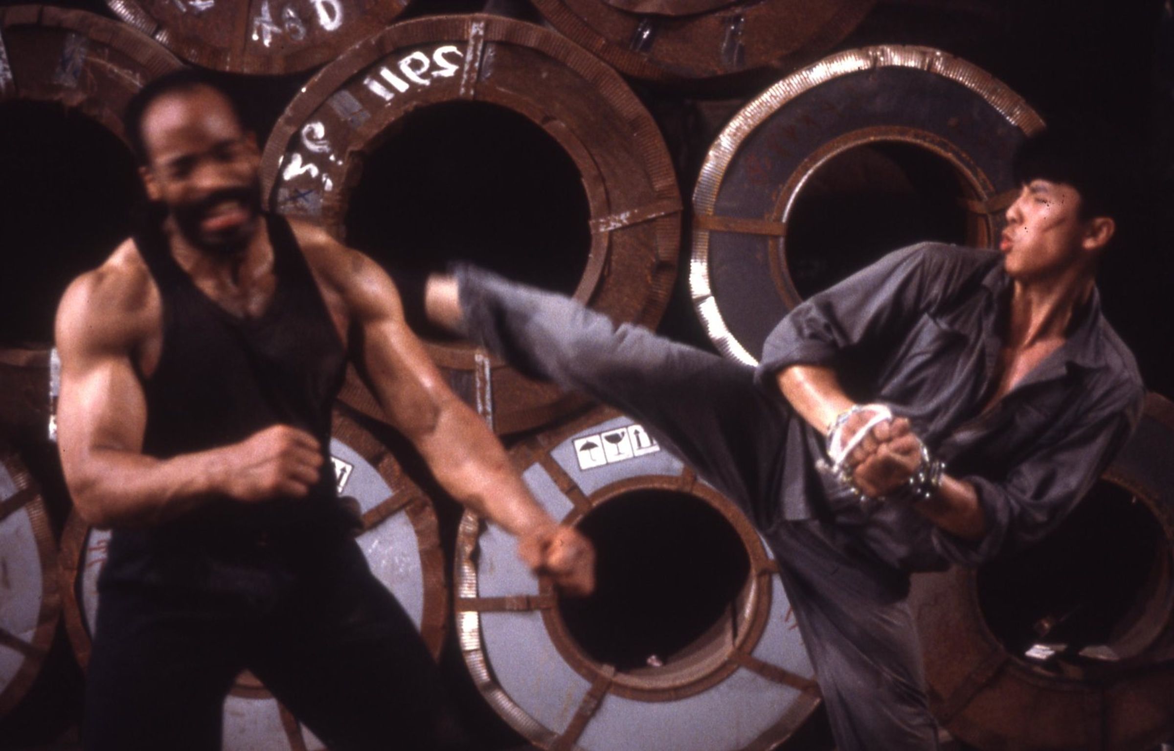 "Rasante ACTION, gewagte STUNTS und perfekte Kampf-Szenen!" Ein muskulöser Mann spannt eine Kette. DVD-Hülle., 1 Blu-ray Disc und 1 DVD