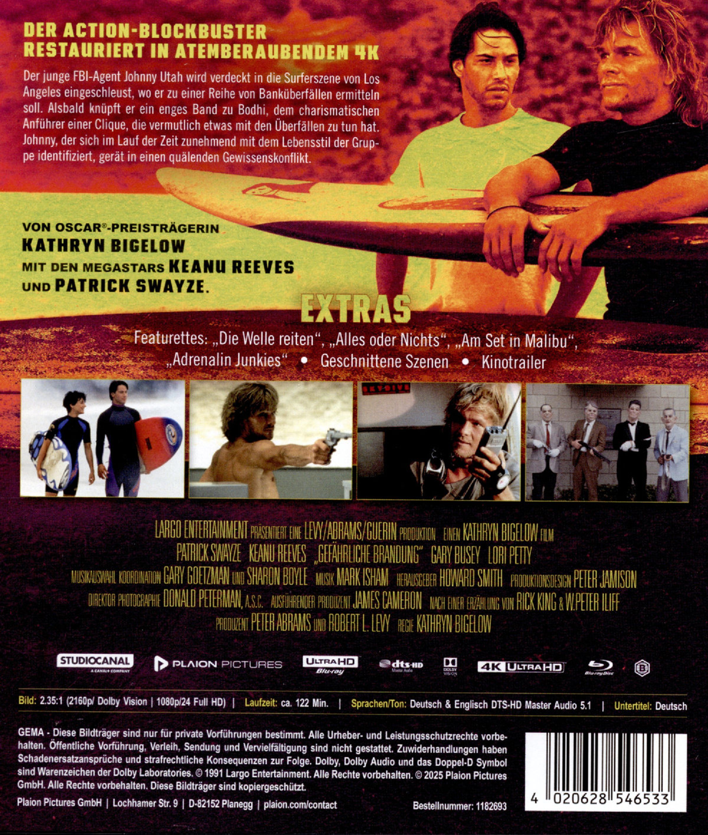 Mit ihrem packenden, vielschichtigen Actionfilm, der einer Gruppe adrenalinsüchtiger Surfer um Patrick Swayze in perfekt eingefangenen Bildern von Donald Peterman folgt, landete die Regisseurin Kathryn Bigelow in den frühen 1990er Jahren einen Hit.