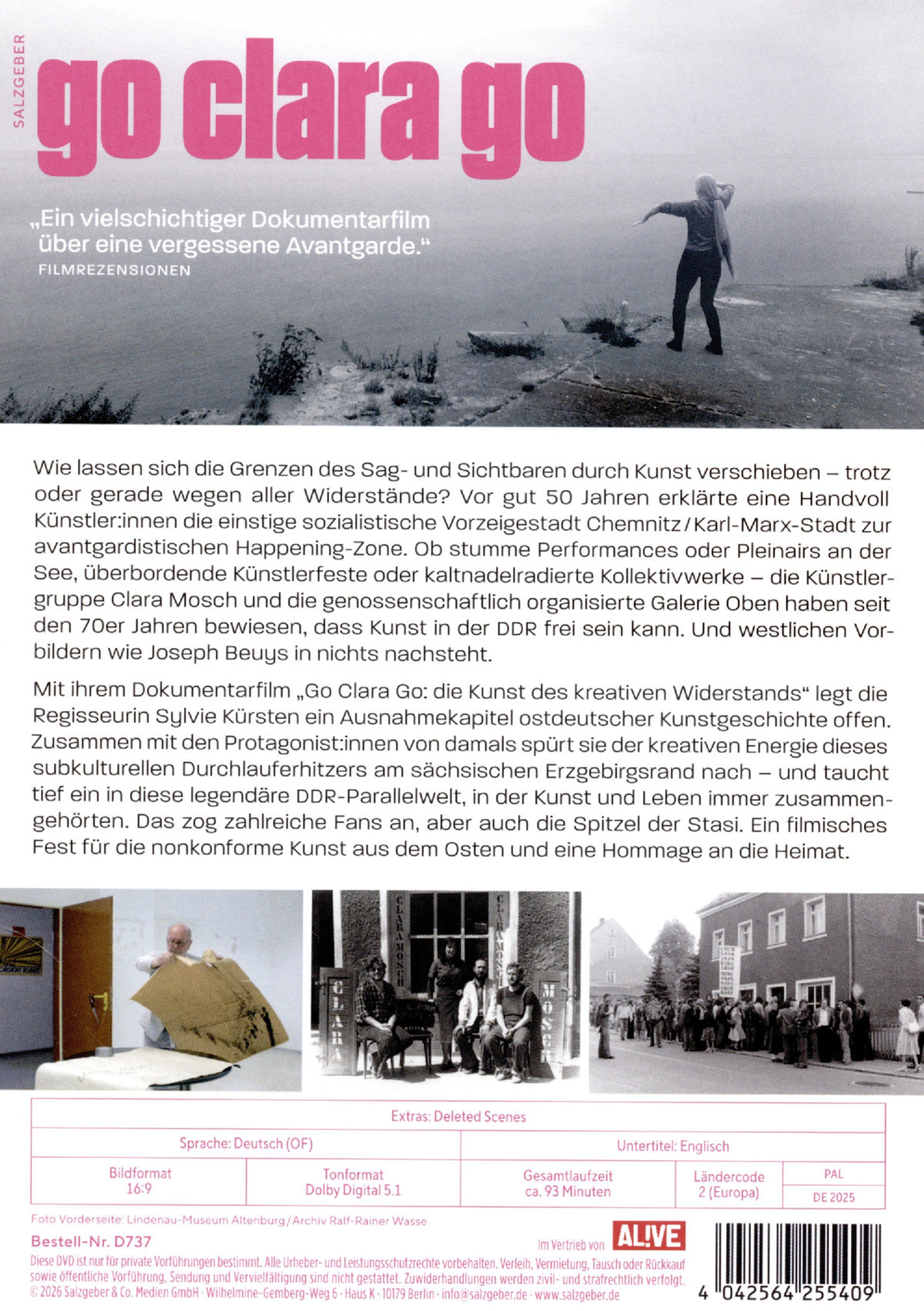 Mit ihrem Dokumentarfilm »Go Clara Go: die Kunst des kreativen Widerstands« legt die Regisseurin Sylvie Kürsten ein Ausnahmekapitel ostdeutscher Kunstgeschichte offen. Zusammen mit den Protagonisten von damals spürt sie der kreativen Energie dieses subkulturellen Durchlauferhitzers am sächsischen Erzgebirgsrand nach - und taucht tief ein in diese legendäre DDR-Parallelwelt, in der Kunst und Leben immer zusammen gehörten. Das zog zahlreiche Fans an, aber auch die Spitzel der Stasi. Ein filmisches Fest für die nonkonforme Kunst aus dem Osten und eine Hommage an die Heimat. Und zwar pünktlich zum europäischen Kulturhauptstadtjahr 2025, wenn Chemnitz das Kunstpublikum aus aller Welt empfängt.