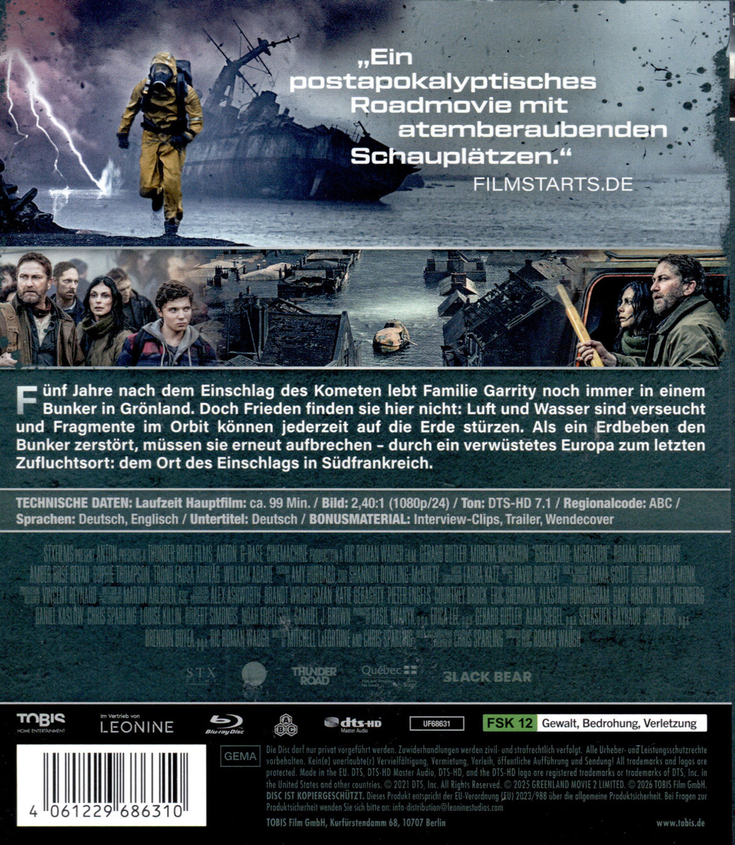 »Ein postapokalyptisches Roadmovie mit atemberaubenden Schauplätzen.« (filmstarts.de)»Noch nie hat sich Gerard Butler so verletzlich gezeigt wie hier.« (rnd)
