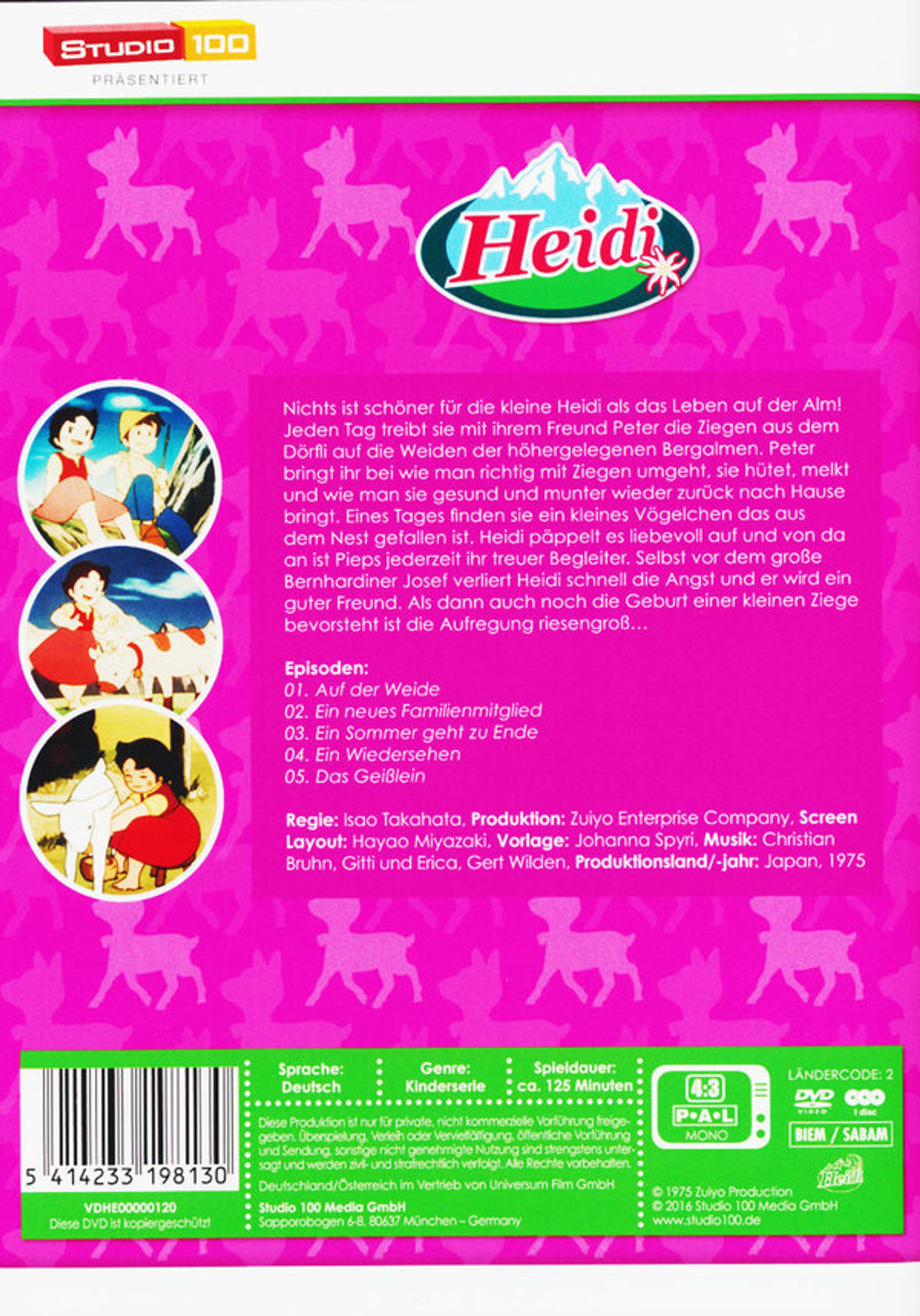 Nichts ist schöner für die kleine Heidi als das Leben auf der Alm! Jeden Tag treibt sie mit ihrem Freund Peter die Ziegen aus dem Dörfli auf die Weiden der höhergelegenen Bergalmen. Peter bringt ihr bei wie man richtig mit Ziegen umgeht, sie hütet, melkt und wie man sie gesund und munter wieder zurück nach Hause bringt. Eines Tages finden sie ein kleines Vögelchen das aus dem Nest gefallen ist. Heidi päppelt es liebevoll auf und von da an ist Pieps jederzeit ihr treuer Begleiter. Selbst vor dem große Bernhardiner Josef verliert Heidi schnell die Angst und er wird ein guter Freund. Als dann auch noch die Geburt einer kleinen Ziege bevorsteht ist die Aufregung riesengroß...