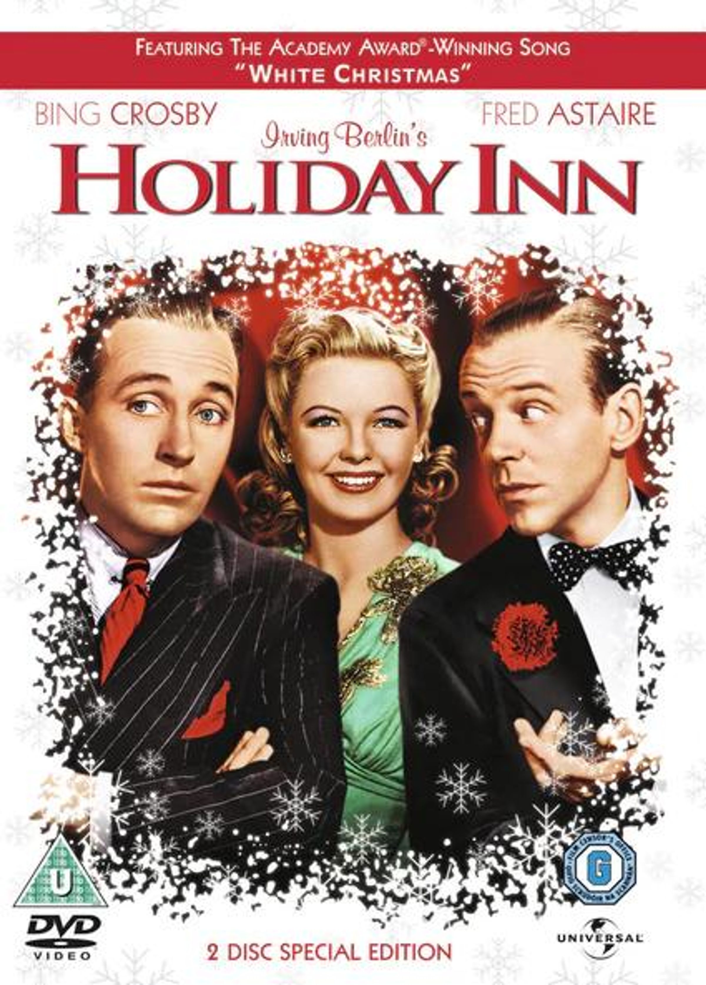 "Featuring the Academy Award-Winning Song 'White Christmas'. Bing Crosby, Fred Astaire und eine lächelnde Frau in festlicher Kleidung.", DVD