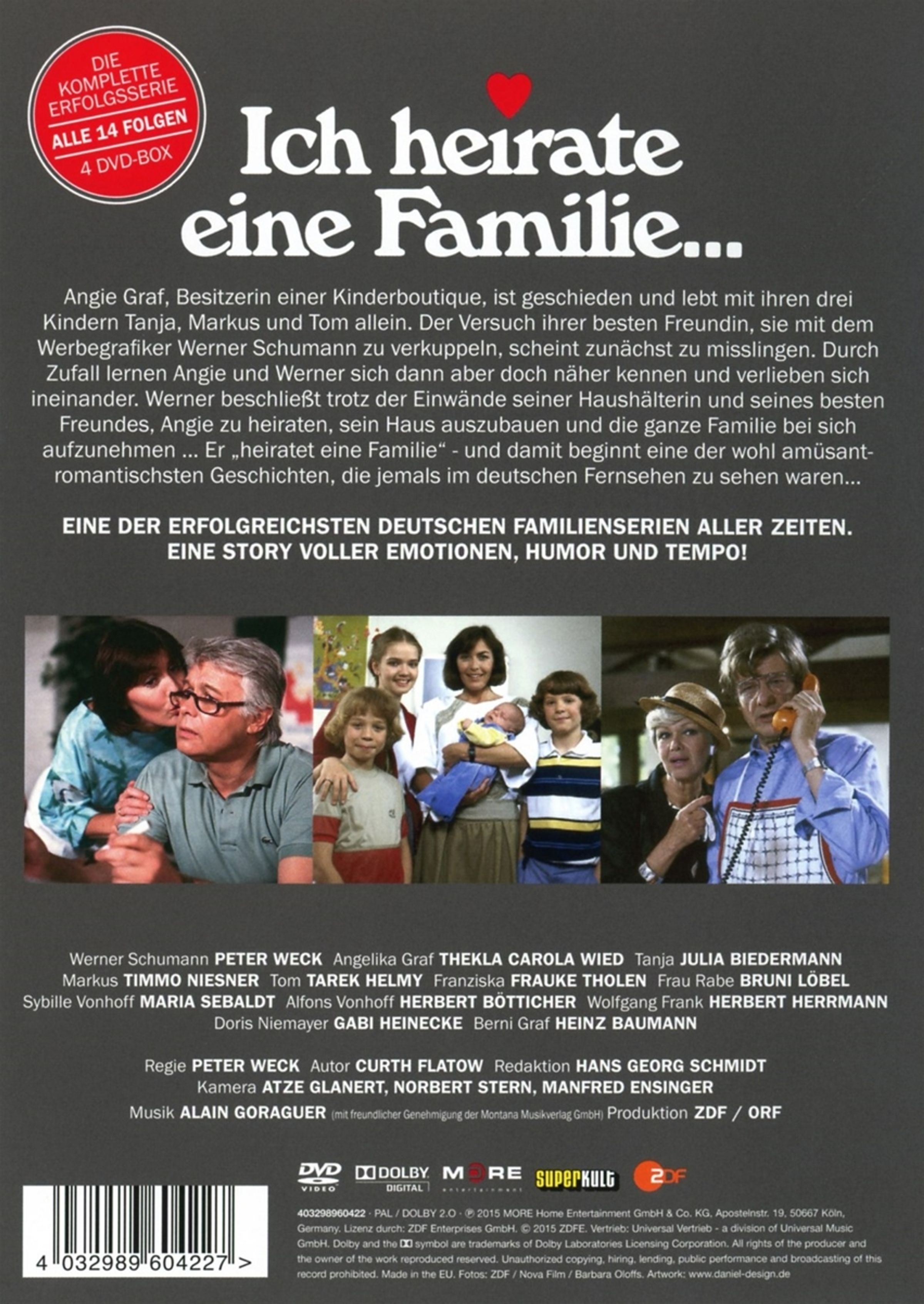 Ich heirate eine Familie - diese grossartige ZDF-Fernsehserie, die zu den erfolgreichsten ihres Genres zählt, begeistert auch heute noch alle Zuschauer. Die rührende Geschichte um die Patchwork-Familie Schumann zählt zu den ganz grossen Fernsehklassikern.