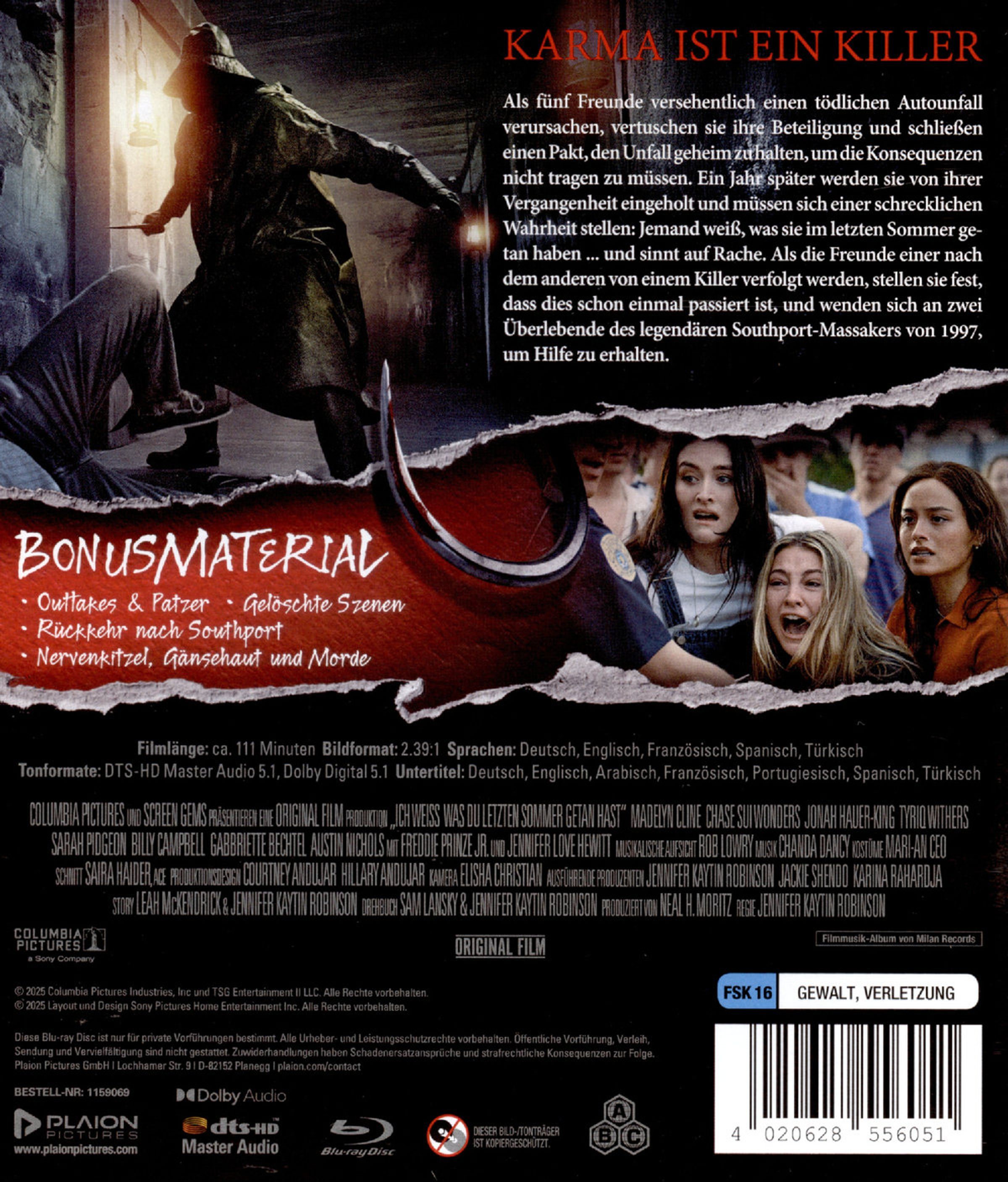 Als fünf Freunde versehentlich einen tödlichen Autounfall verursachen, vertuschen sie ihre Beteiligung und schließen einen Pakt, den Unfall geheim zu halten, um die Konsequenzen nicht tragen zu müssen. Ein Jahr später werden sie von ihrer Vergangenheit eingeholt und müssen sich einer schrecklichen Wahrheit stellen: Jemand weiß, was sie im letzten Sommer getan haben ... und sinnt auf Rache. Als die Freunde einer nach dem anderen von einem Killer verfolgt werden, stellen sie fest, dass dies schon einmal passiert ist, und wenden sich an zwei Überlebende des legendären Southport-Massakers von 1997, um Hilfe zu erhalten.