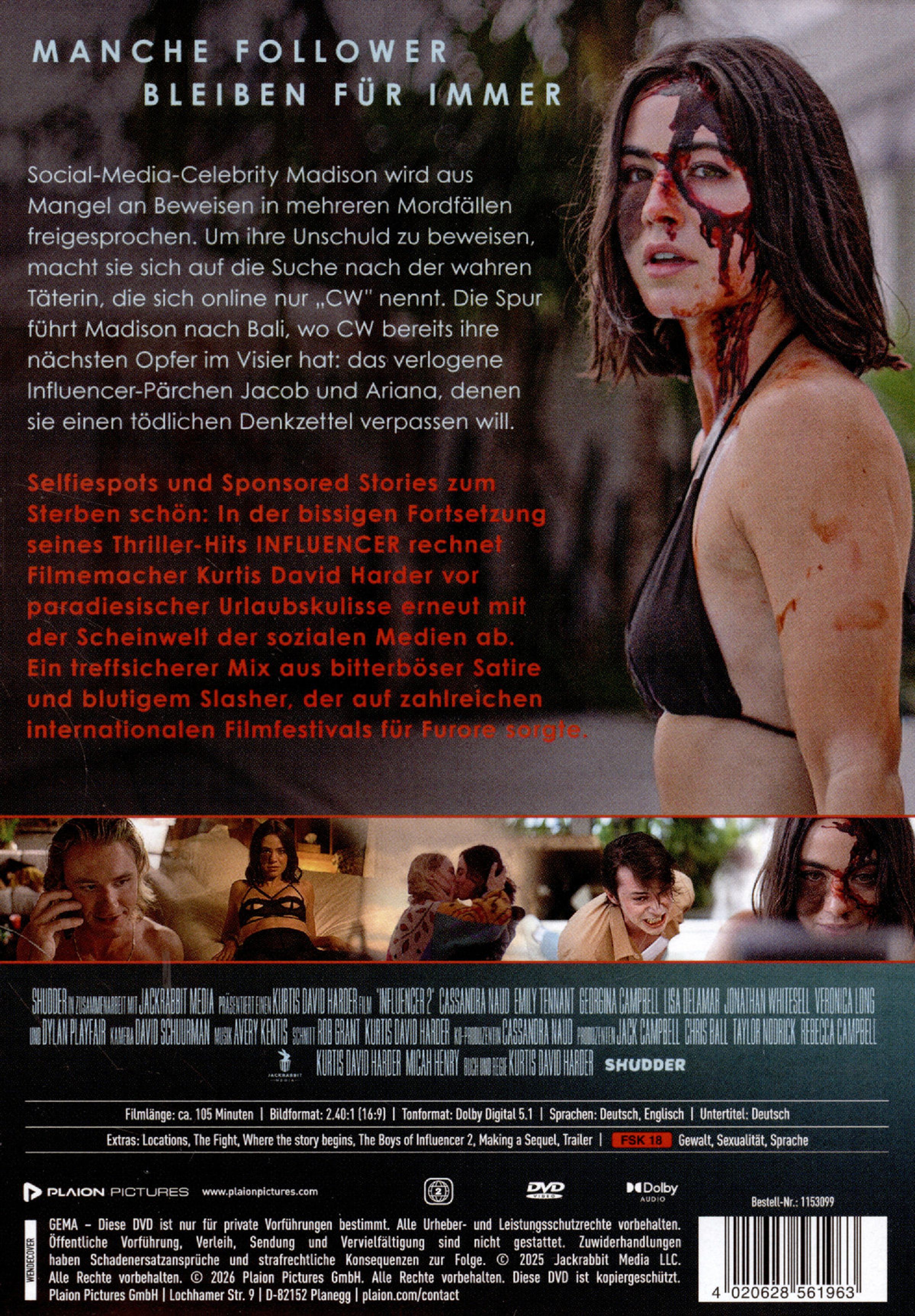 Selfiespots und Sponsored Stories zum Sterben schön: In der bissigen Fortsetzung seines Thriller-Hits INFLUENCER rechnet Filmemacher Kurtis David Harder vor paradiesischer Urlaubskulisse erneut mit der Scheinwelt der sozialen Medien ab. Ein treffsicherer Mix aus bitterböser Satire und blutigem Slasher, der auf zahlreichen internationalen Filmfestivals für Furore sorgte.