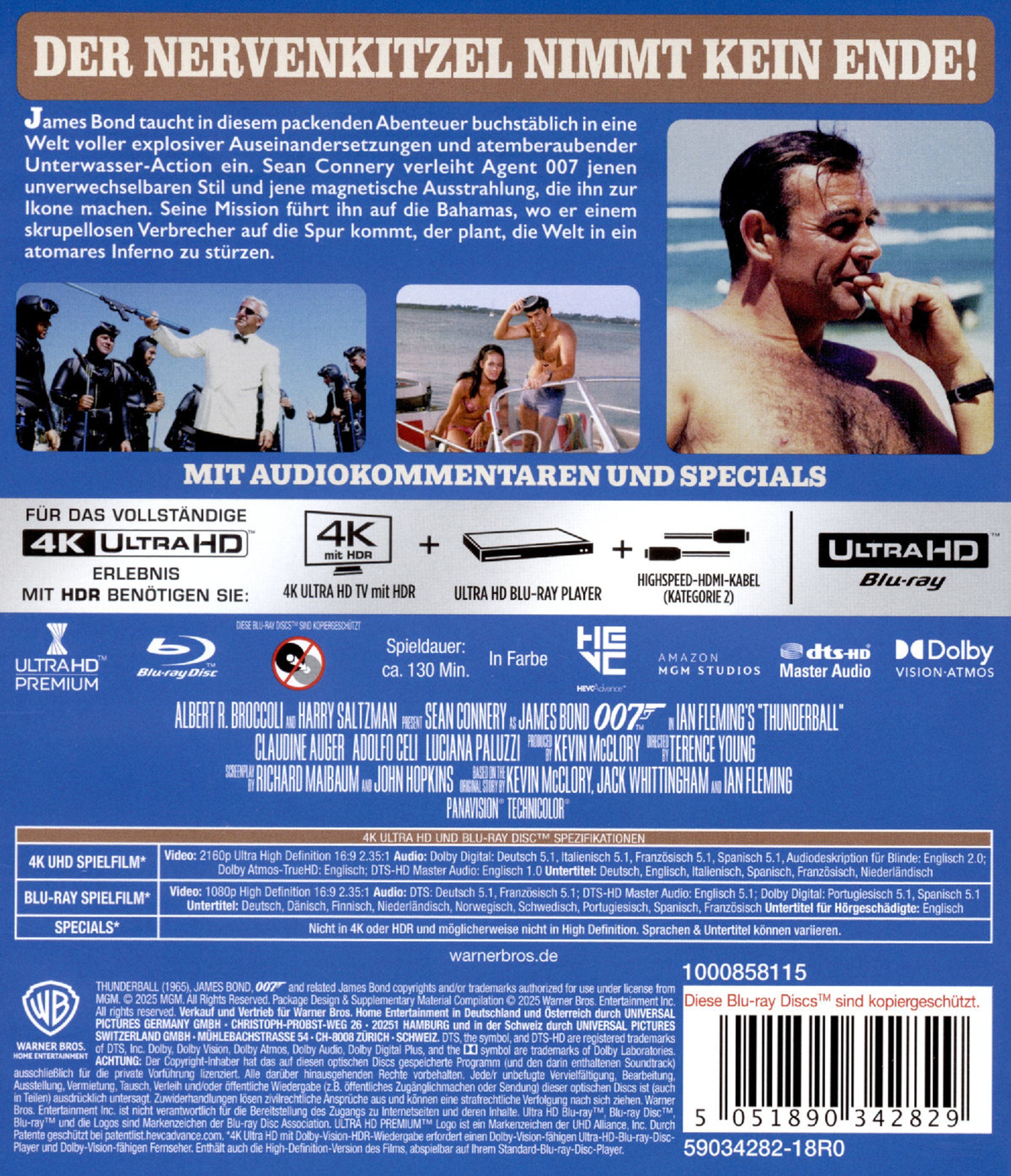 James Bond taucht in diesem packenden Abenteuer buchstäblich in eine Welt voller explosiver Auseinandersetzungen und atemberaubender Unterwasser-Action ein. Sean Connery verleiht Agent 007 jenen unverwechselbaren Stil und jene magnetische Ausstrahlung, die ihn zur Ikone machen. Seine Mission führt ihn auf die Bahamas, wo er einem skrupellosen Verbrecher auf die Spur kommt, der plant, die Welt in ein atomares Inferno zu stürzen.