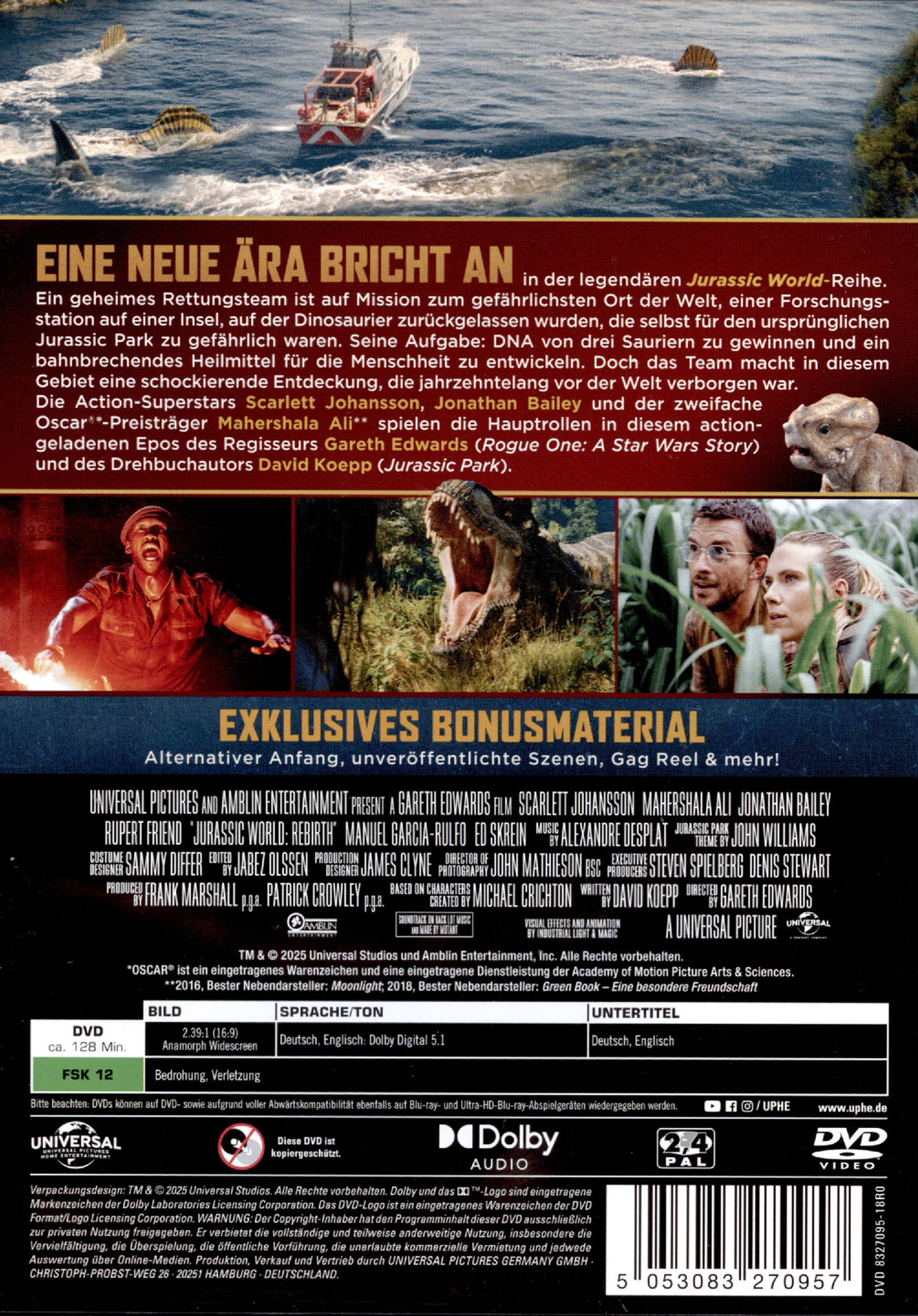 Eine neue Ära bricht an. Seit den Ereignissen auf Isla Nublar teilen sich Dinosaurier die Welt mit den Menschen. Fünf Jahre später hat sich die Ökologie des Planeten allerdings stark verändert und die Dinosaurier sind gezwungen, sich in isolierte äquatoriale Umgebungen zurückzuziehen. Angeführt von Superstar Scarlett Johansson, dem Emmy- und SAG-Nominierten Jonathan Bailey und dem zweifachen Oscar®-Preisträger Mahershala Ali begibt sich ein unerschrockenes Expertenteam in streng geheimer Mission zu einer entlegenen Insel. Ziel ist es, für ein bahnbrechendes Heilmittel genetisches Material aus den größten Kolossen zu Land, zu Wasser und in der Luft zu extrahieren...
