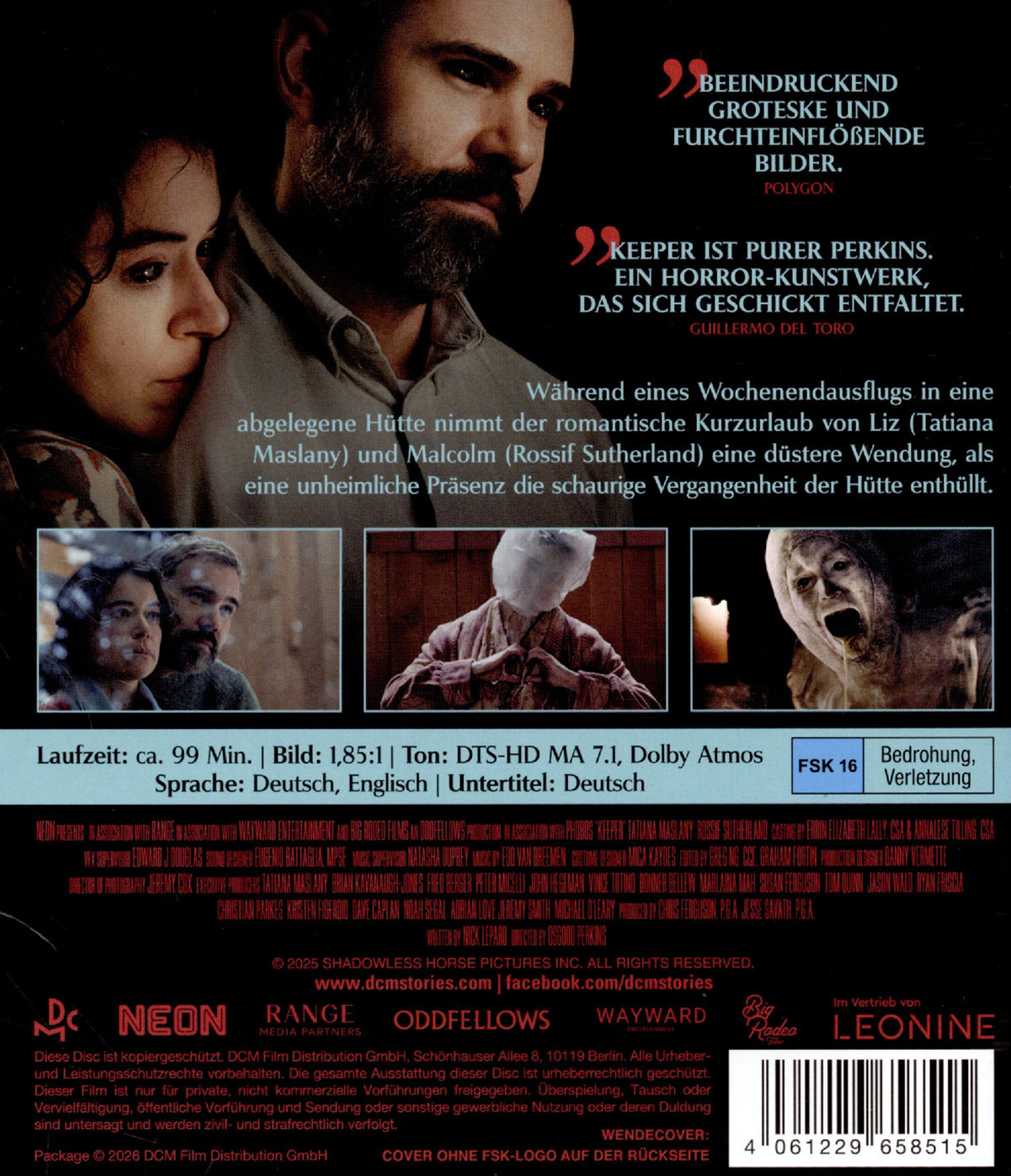 »Keeper zeigt beeindruckend groteske und furchteinflößende Bilder, noch mehr als Perkins bisherige Filme.« (POLYGON)»Ein furchterregender, unheimlicher Abstieg in den Wahnsinn« (James Wan)