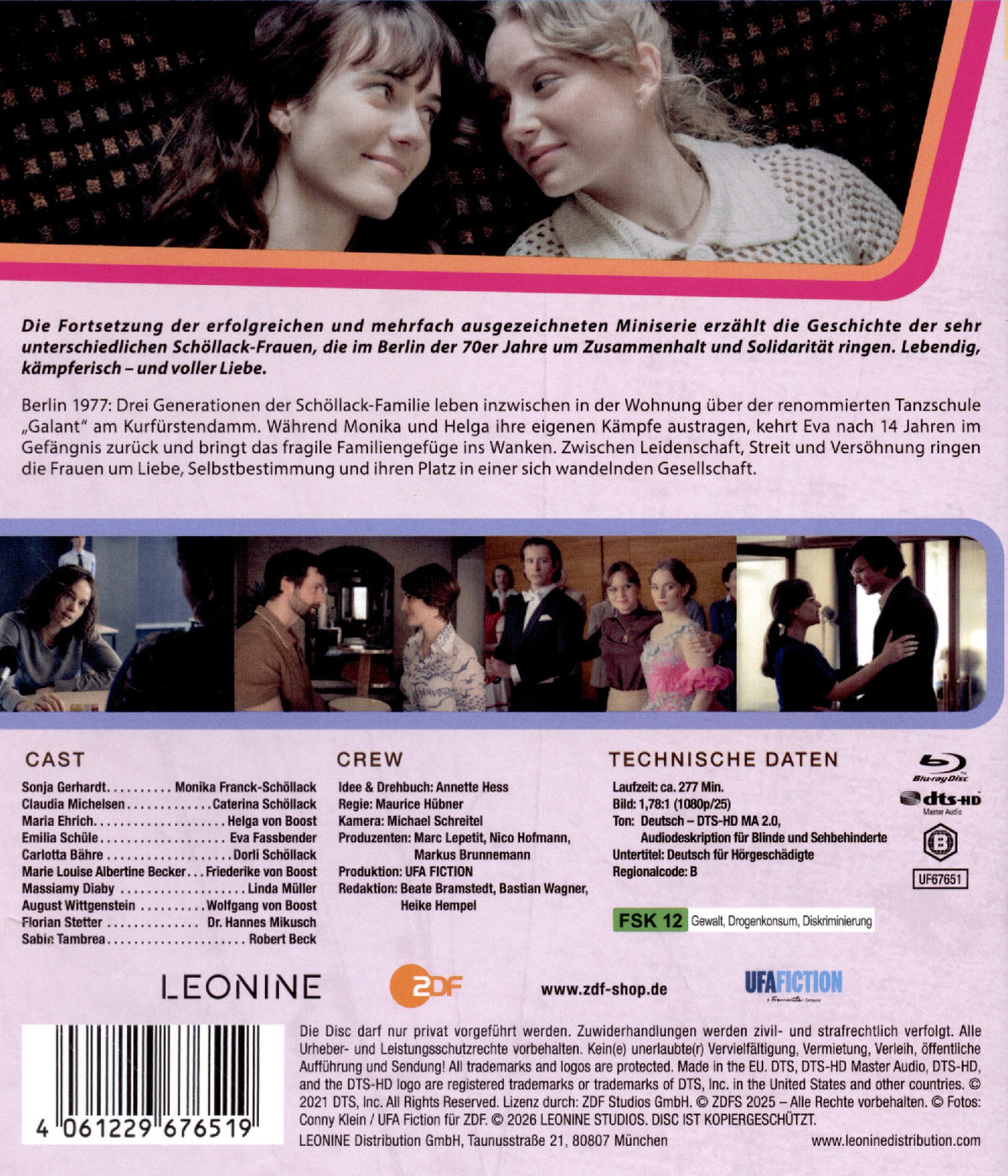 Im Berlin der 70er Jahre ringen die sehr unterschiedlichen Schöllack-Frauen um Zusammenhalt und Solidarität. Lebendig, kämpferisch - und voller Liebe. Berlin 1977: Drei Generationen der Schöllack-Familie leben inzwischen in der Wohnung über der renommierten Tanzschule »Galant« am Kurfürstendamm. Während Monika und Helga ihre eigenen Kämpfe austragen, kehrt Eva nach 14 Jahren im Gefängnis zurück und bringt das fragile Familiengefüge ins Wanken. Zwischen Leidenschaft, Streit und Versöhnung ringen die Frauen um Liebe, Selbstbestimmung und ihren Platz in einer sich wandelnden Gesellschaft.