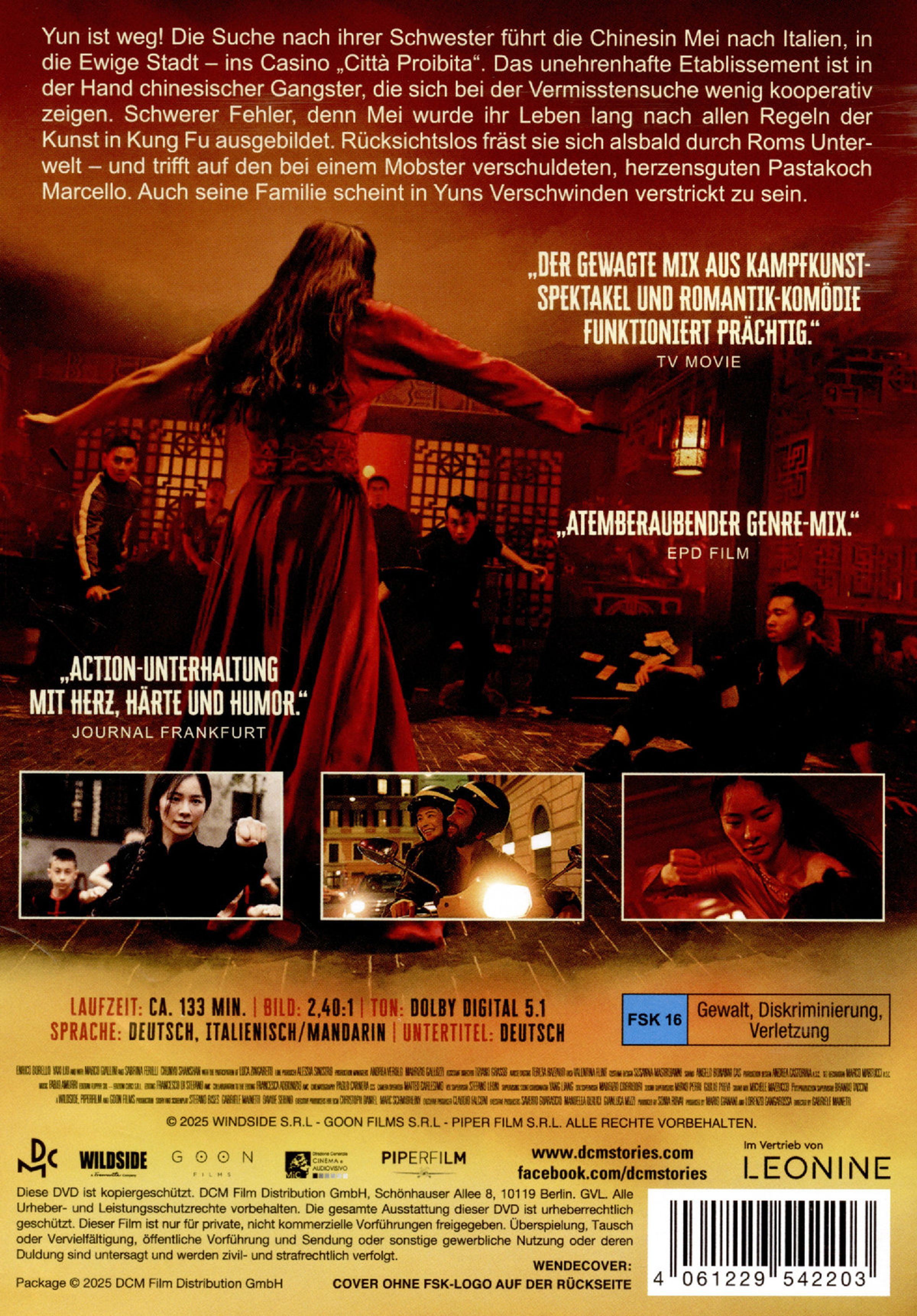 Yun ist weg! Die Suche nach ihrer Schwester führt die Chinesin Mei nach Italien in die Ewige Stadt, ins Casino »Città Proibita«. Das unehrenhafte Etablissement ist in der Hand chinesischer Gangster, die sich bei der Vermisstensuche wenig kooperativ zeigen. Schwerer Fehler, denn Mei wurde ihr Leben lang nach allen Regeln der Kunst in Kung Fu ausgebildet. Rücksichtslos fräst sie sich alsbald durch Roms Unterwelt - und trifft auf den bei einem Mobster verschuldeten, herzensguten Pastakoch Marcello. Auch seine Familie scheint in Yuns Verschwinden verstrickt zu sein.