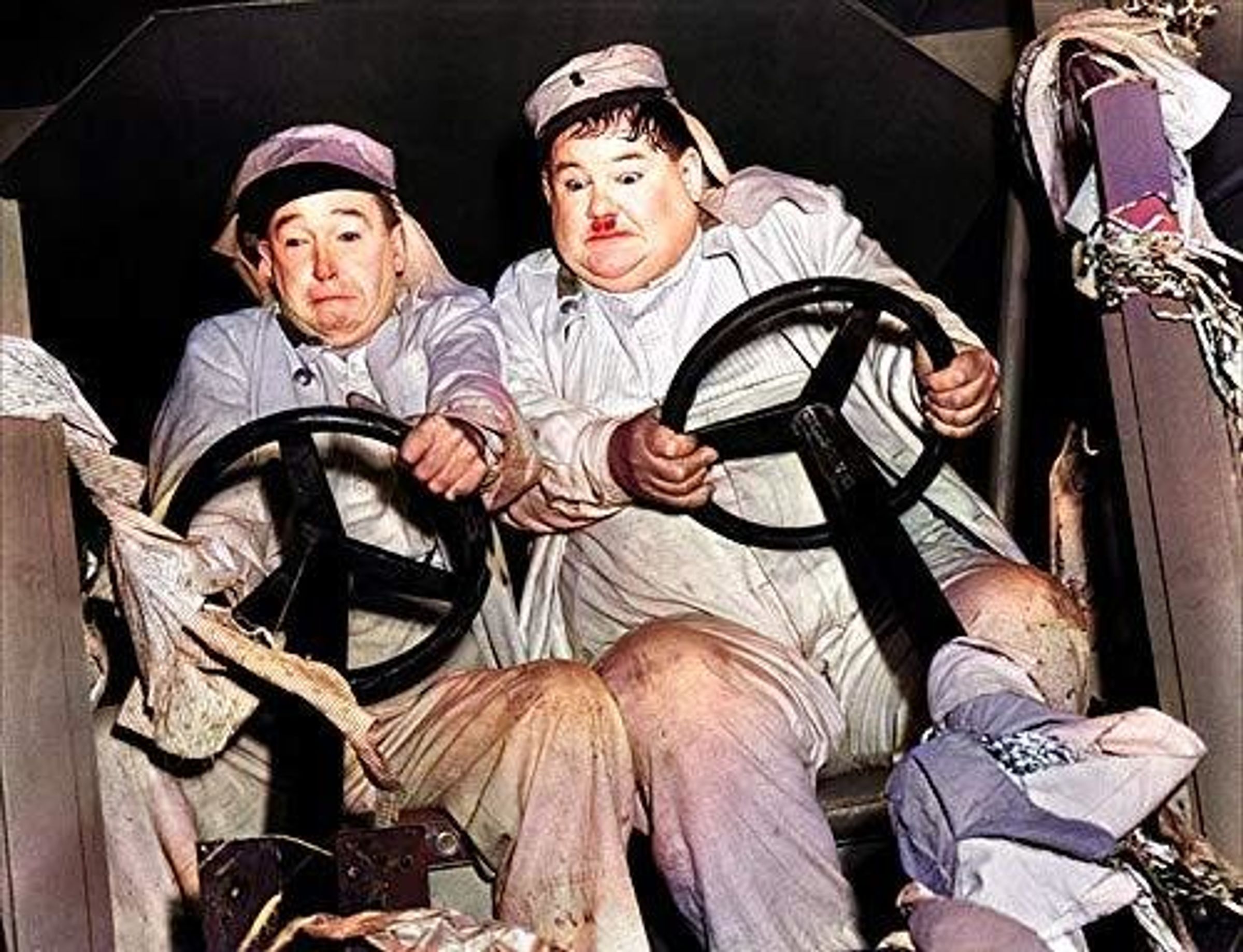In Paris verliebt sich Ollie in Georgette, die einen anderen Mann vorzieht. Mit Stan tritt er der Fremdenlegion bei, wo die Freunde sich bald beim Kommandeur unbeliebt machen und zum Wäschereidienst eingeteilt werden. Nach einem gescheiterten Fluchtversuch werden sie zum Tode verurteilt. Sie können fliehen und geraten in ein Flugzeug, mit dem sie über der Wüste Loopings drehen. Nach der Bruchlandung überlebt Stan. Ollie schwebt als Engel in den Himmel und wird kurz danach als Pferd wieder geboren.