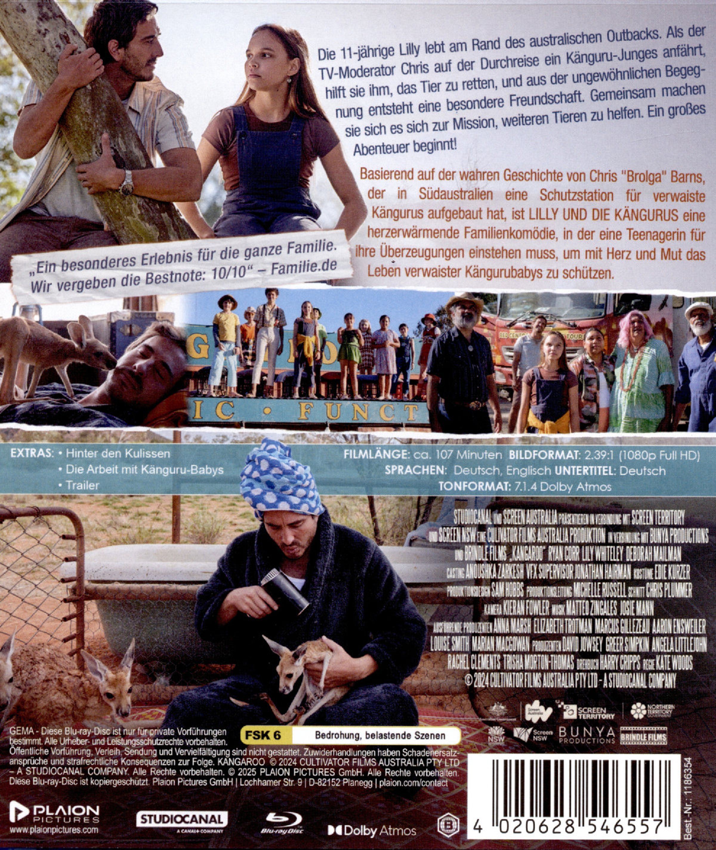 Text: "Zwei ungleiche Freunde. Ein einzigartiges Abenteuer. Lilly und die Kängurus." Ein Mädchen hält ein Känguru im Arm., Blu-ray Disc