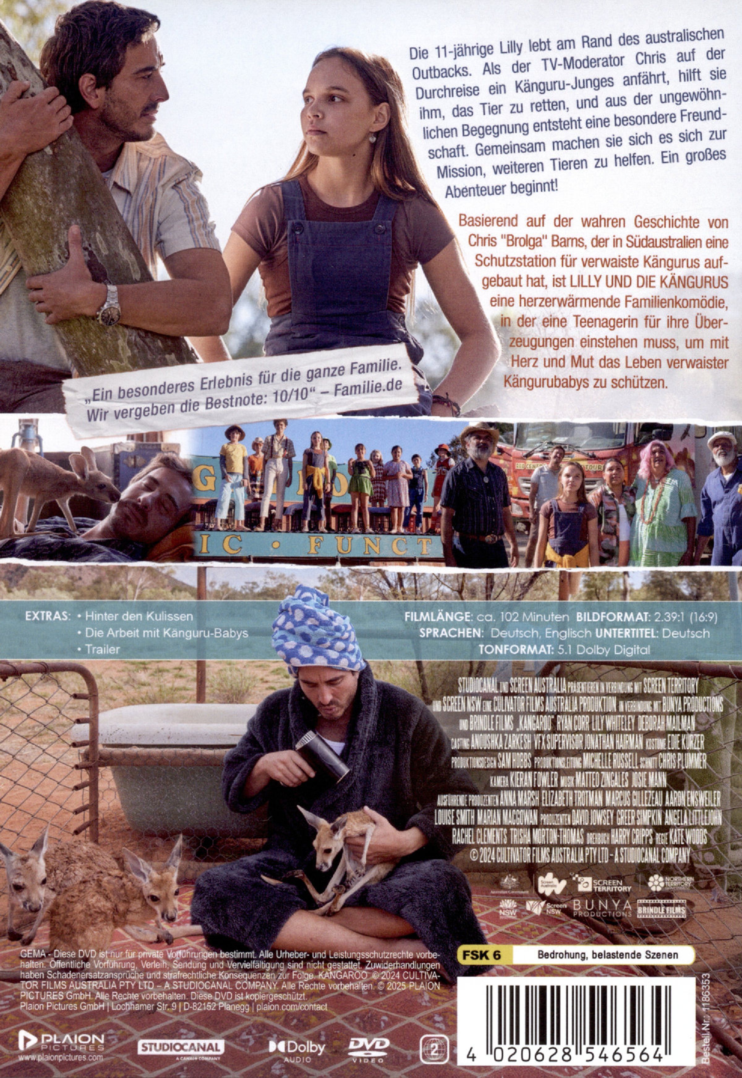 Basierend auf der wahren Geschichte von Chris 'Brolga' Barns, der in Südaustralien eine Schutzstation für verwaiste Kängurus aufgebaut hat, ist LILLY UND DIE KÄNGURUS eine herzerwärmende Familienkomödie, bei der Kate Woods Regie führte. Vor der traumhaften Kulisse Australiens brillieren Ryan Corr und Newcomerin Lily Whiteley in dem opulent gefilmten, spannenden Familienfilm, in dem eine Teenagerin für ihre Überzeugungen einstehen muss, um mit Herz und Mut das Leben verwaister Kängurubabys zu schützen.