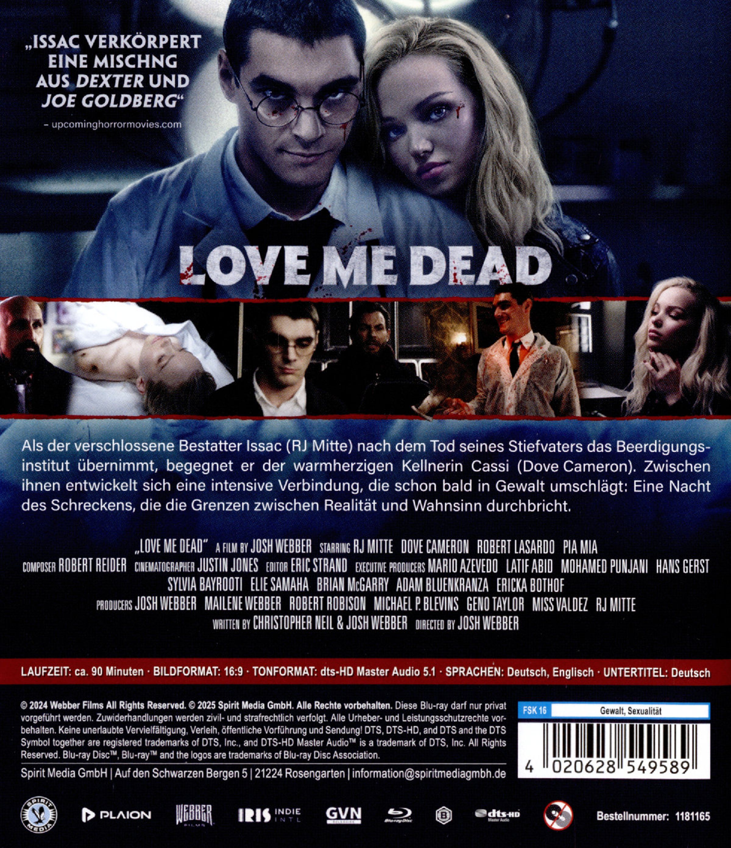 »Love Me Dead« ist ein fesselnder Psychothriller über Obsession, Abhängigkeit und dunkle Begierden - spannend bis zur letzten Minute und ideal für alle, die packende Thriller mit Tiefgang suchen. Mit Breaking Bad-Star RJ Mitte und Dove Cameron in einer überraschend ernsten Hauptrolle trifft der Film den Nerv der Zeit: emotional, modern und visuell hochwertig. Bekannt aus internationalen Erfolgen wie Shameless und Vengeance, zeigt Cameron hier eine neue, erwachsene Facette - ein echter Blickfang für Thriller-Fans. Visuell wie tonal richtet sich »Love Me Dead« an Fans anspruchsvoller Thriller wie »Gone Girl« oder »A Simple Favor«: stylisch, zugespitzt und smart erzählt. Dazu kommt ein Soundtrack mit modernem, melancholischem Drive. Der Film vereint eine realistische Handlung mit surrealen Bildern und zeigt, wie tiefgreifend Einsamkeit das menschliche Verhalten beeinflussen kann.