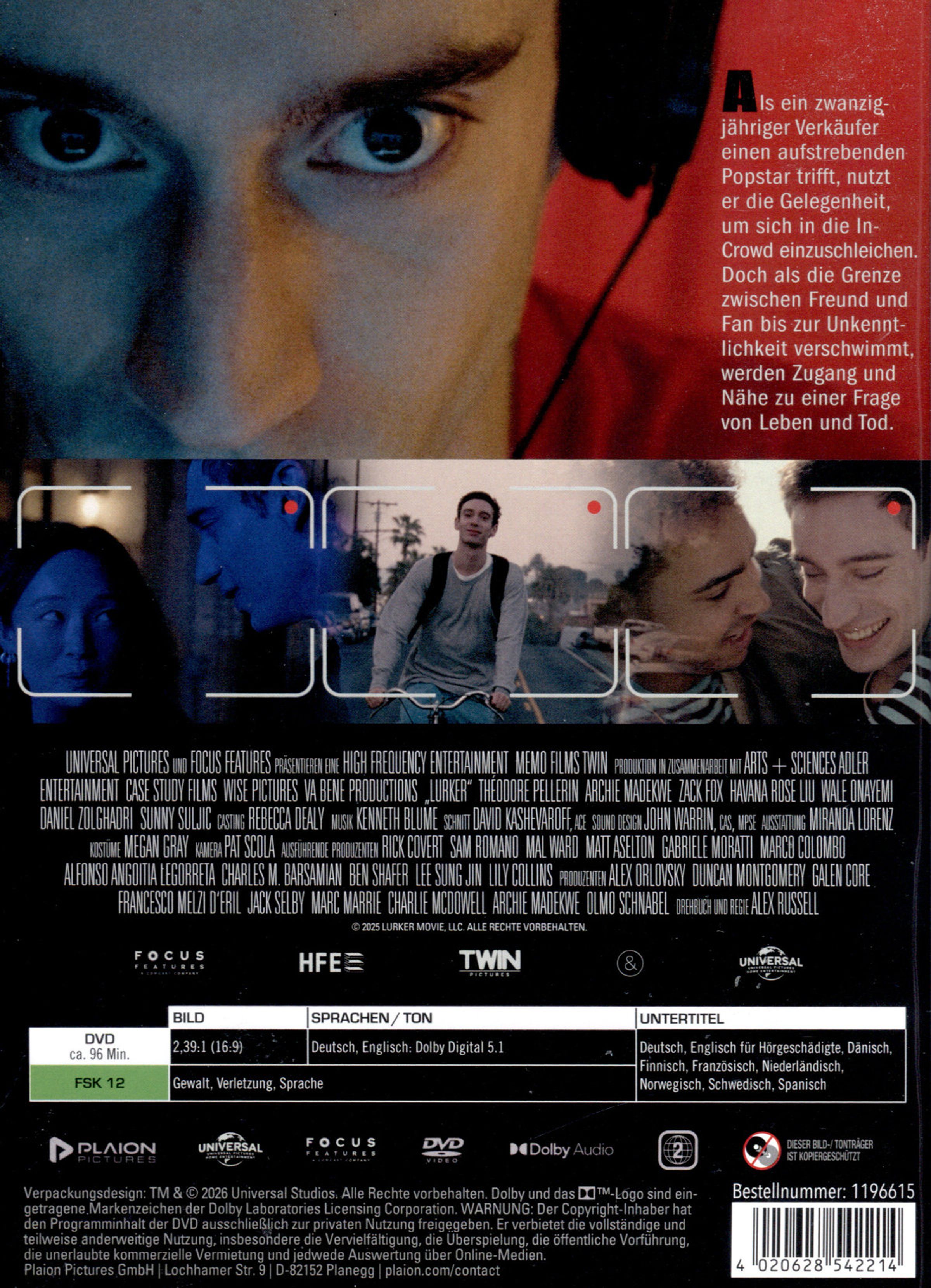 Mit LURKER präsentiert Emmy- und PGA-Gewinner Alex Russell sein eindrucksvolles Spielfilmdebüt, das seine Weltpremiere beim Sundance Film Festival 2025 feierte. In den Hauptrollen begeistern Théodore Pellerin als Matthew und Archie Madekwe als Oliver mit ihrer intensiven Darstellung. Die Kameraarbeit von Pat Scola pendelt zwischen Intimität und Voyeurismus und wird durch den hypnotischen Soundtrack von Kenneth Blume subtil verstärkt. Mit scharfem Blick taucht LURKER in die schillernde, zugleich gnadenlose Welt des Ruhms ein und entfaltet ein packendes Psychodrama über Selbstdarstellung, Eitelkeit und die Sehnsucht nach Bedeutung.
