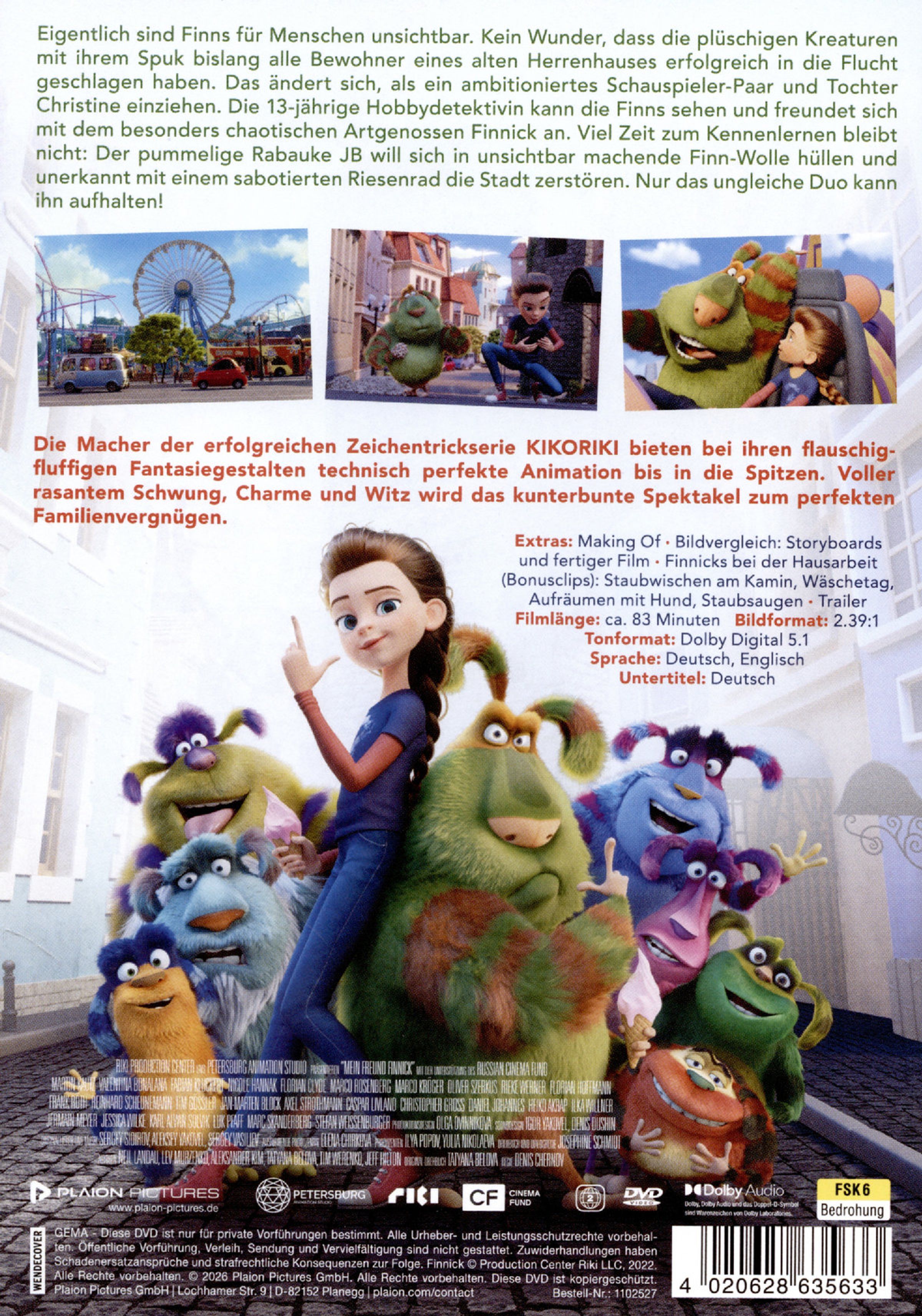 Eigentlich sind Finns für Menschen unsichtbar. Kein Wunder, dass die plüschigen Kreaturen mit ihrem Spuk bislang alle Bewohner eines alten Herrenhauses erfolgreich in die Flucht geschlagen haben. Das ändert sich, als ein ambitioniertes Schauspieler-Paar und Tochter Kristin einziehen. Die 13-jährige Hobbydetektivin kann die Finns sehen und freundet sich mit dem besonders chaotischen Artgenossen Finnick an. Viel Zeit zum Kennenlernen bleibt nicht: Der pummelige Rabauke JB will sich in unsichtbar machende Finn-Wolle hüllen und unerkannt mit einem sabotierten Riesenrad die Stadt zerstören. Nur das ungleiche Duo kann ihn aufhalten.