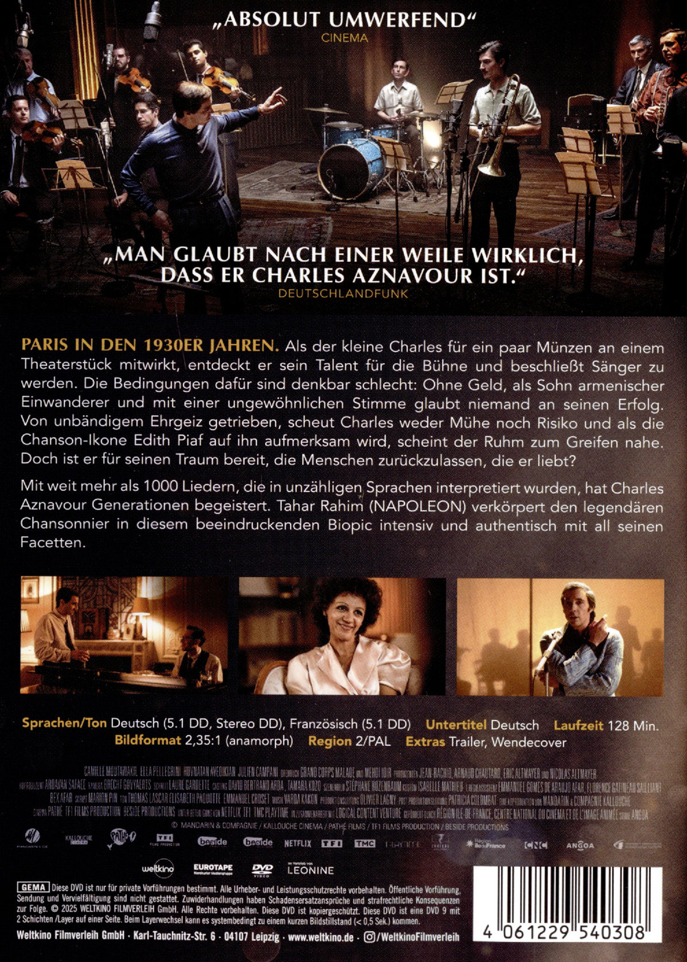 Mit weit mehr als 1000 Liedern, die in unzähligen Sprachen interpretiert wurden, hat Charles Aznavour Generationen begeistert. Tahar Rahim verkörpert den legendären Chansonnier in diesem beeindruckenden Biopic intensiv und authentisch mit all seinen Facetten.