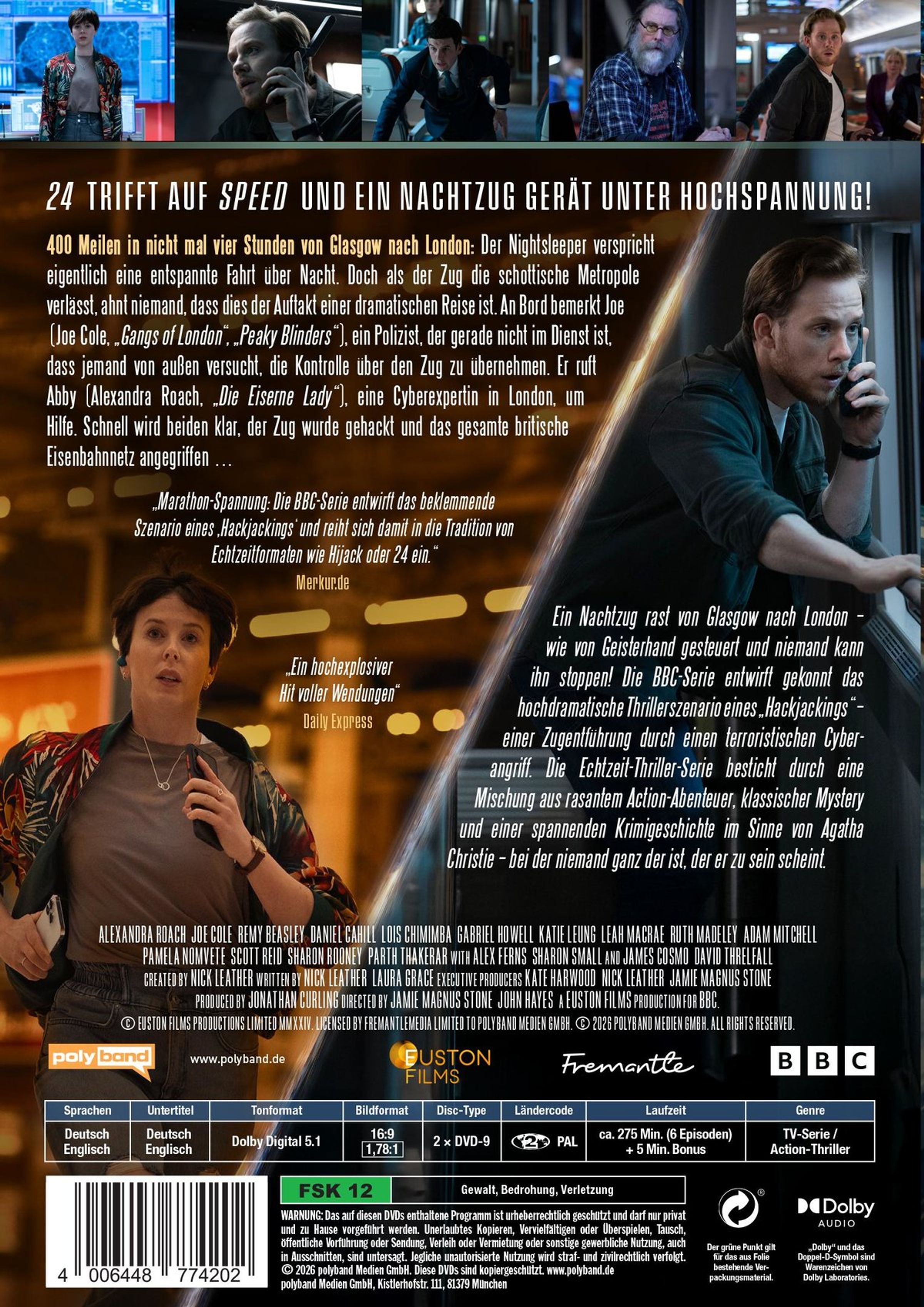 Ein Nachtzug rast von Glasgow nach London - wie von Geisterhand gesteuert und niemand kann ihn stoppen! Die BBC-Serie entwirft gekonnt das hochdramatische Thrillerszenario eines »Hackjackings« - einer Zugentführung durch einen terroristischen Cyberangriff.