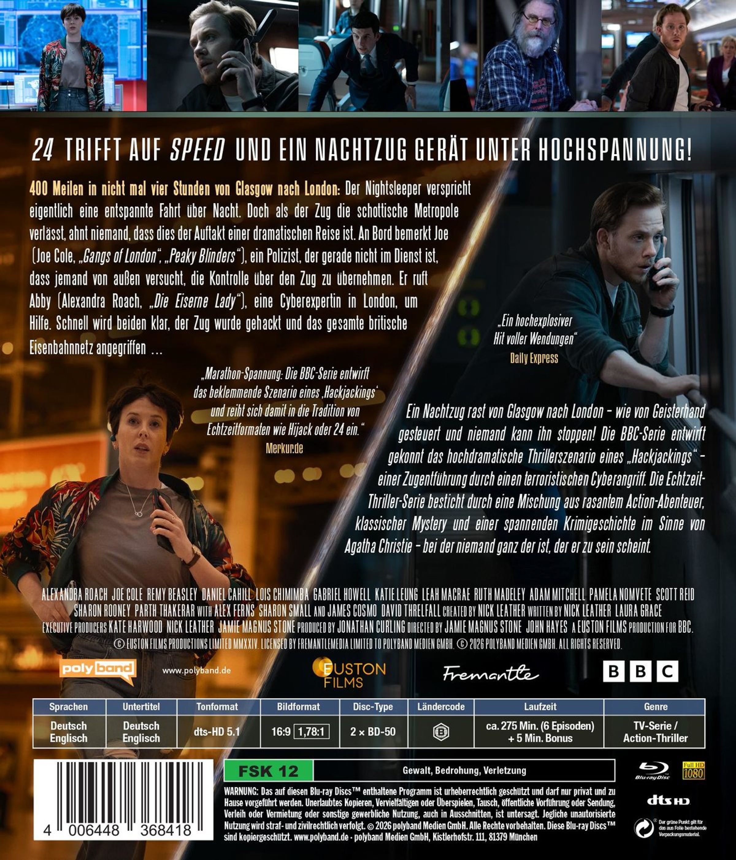 Ein Nachtzug rast von Glasgow nach London - wie von Geisterhand gesteuert und niemand kann ihn stoppen! Die BBC-Serie entwirft gekonnt das hochdramatische Thrillerszenario eines »Hackjackings« - einer Zugentführung durch einen terroristischen Cyberangriff.
