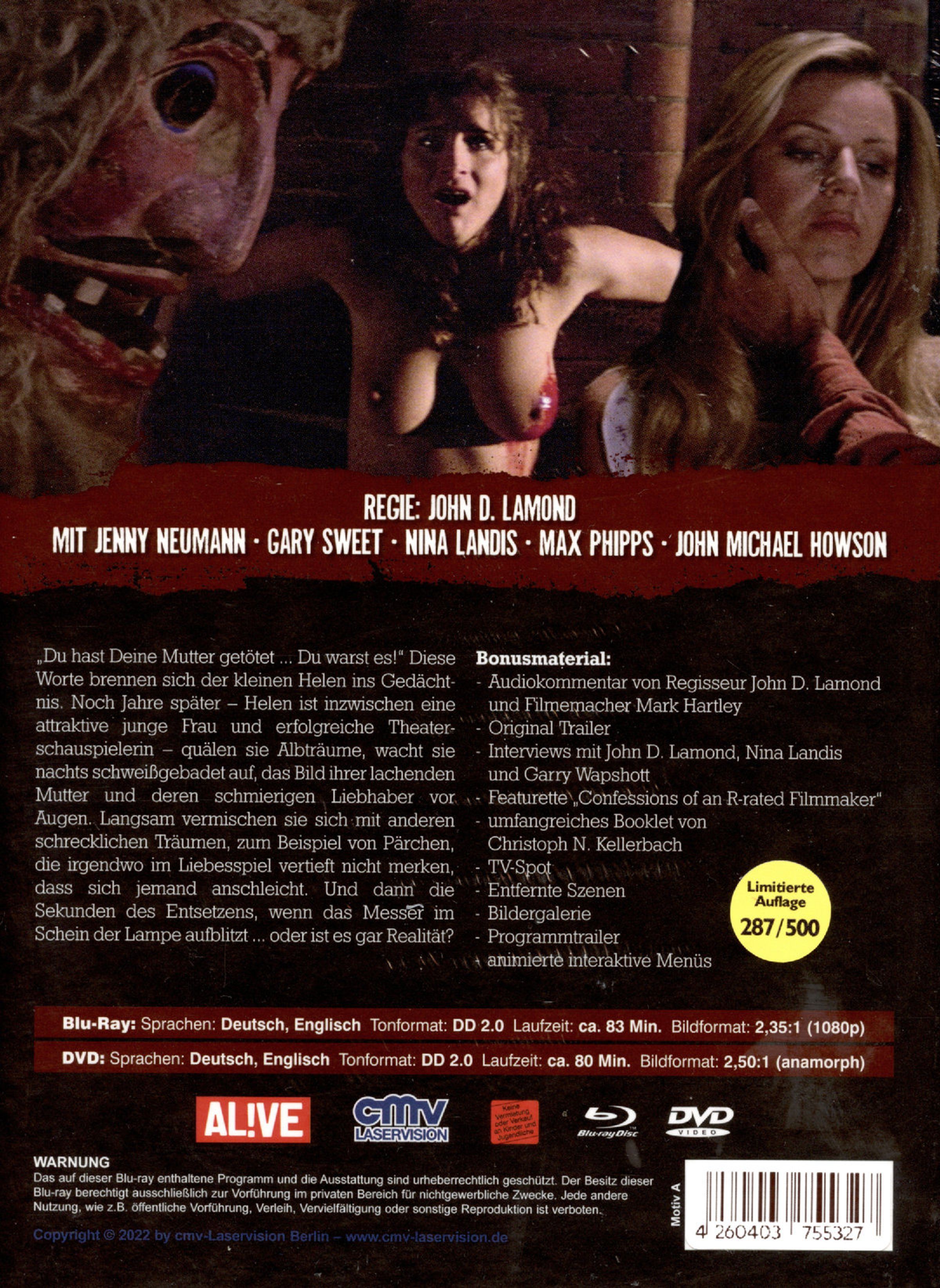 „Sie muss töten, um zu leben. Nightmare on the Street.“ Illustration einer Frau in Panik vor einem Messer., 1 Blu-ray Disc und 1 DVD