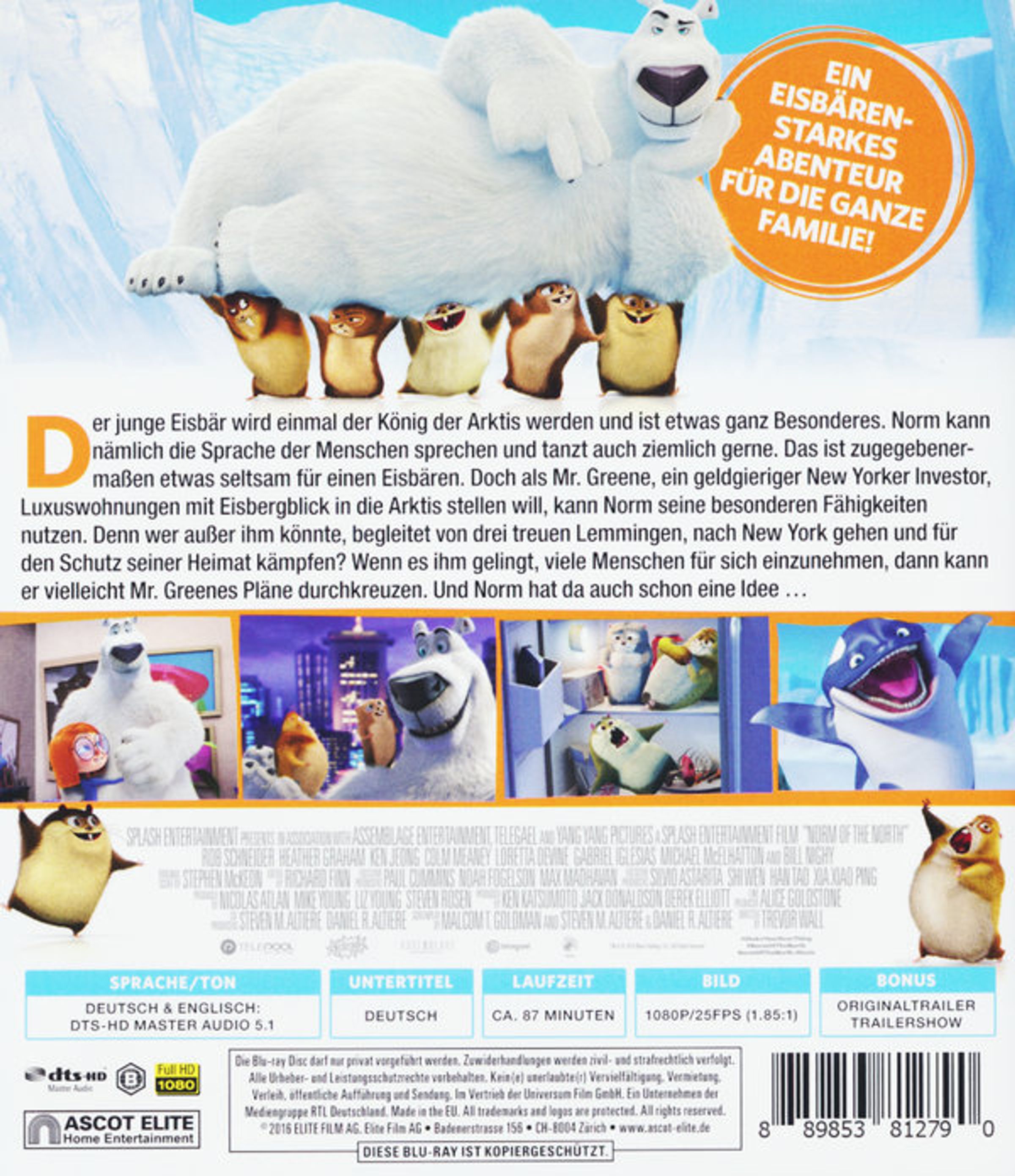 Der gutmütige Eisbär Norm genießt sein Leben in der Ruhe der frostigen Arktis. Doch immer mehr amerikanischen Touristen legen mit riesigen Kreuzfahrt-Schiffen in den kühlen Gefilden an und stören den Frieden der Elche, Robben, Eisbären und Co. Fiese Investoren planen sogar den Bau von luxuriösen Shopping-Malls in der bisher unberührten Arktis. Das geht eindeutig zu weit! Norm muss etwas gegen die profitgierigen Menschen unternehmen und die Heimat seiner Freunde schützen. In der Begleitung von drei unerschrockenen Freunden reist der Eisbär nach New York City, um den Wahnsinn zu stoppen. Im Big Apple erwarten die Tiere ungeahnte Abenteuer und so wird 'Norm of the North' plötzlich zum gefeierten TV-Star. Dazu soll der plüschige Bär auch noch das Maskottchen des Unternehmens werden, das er eigentlich aufhalten will.