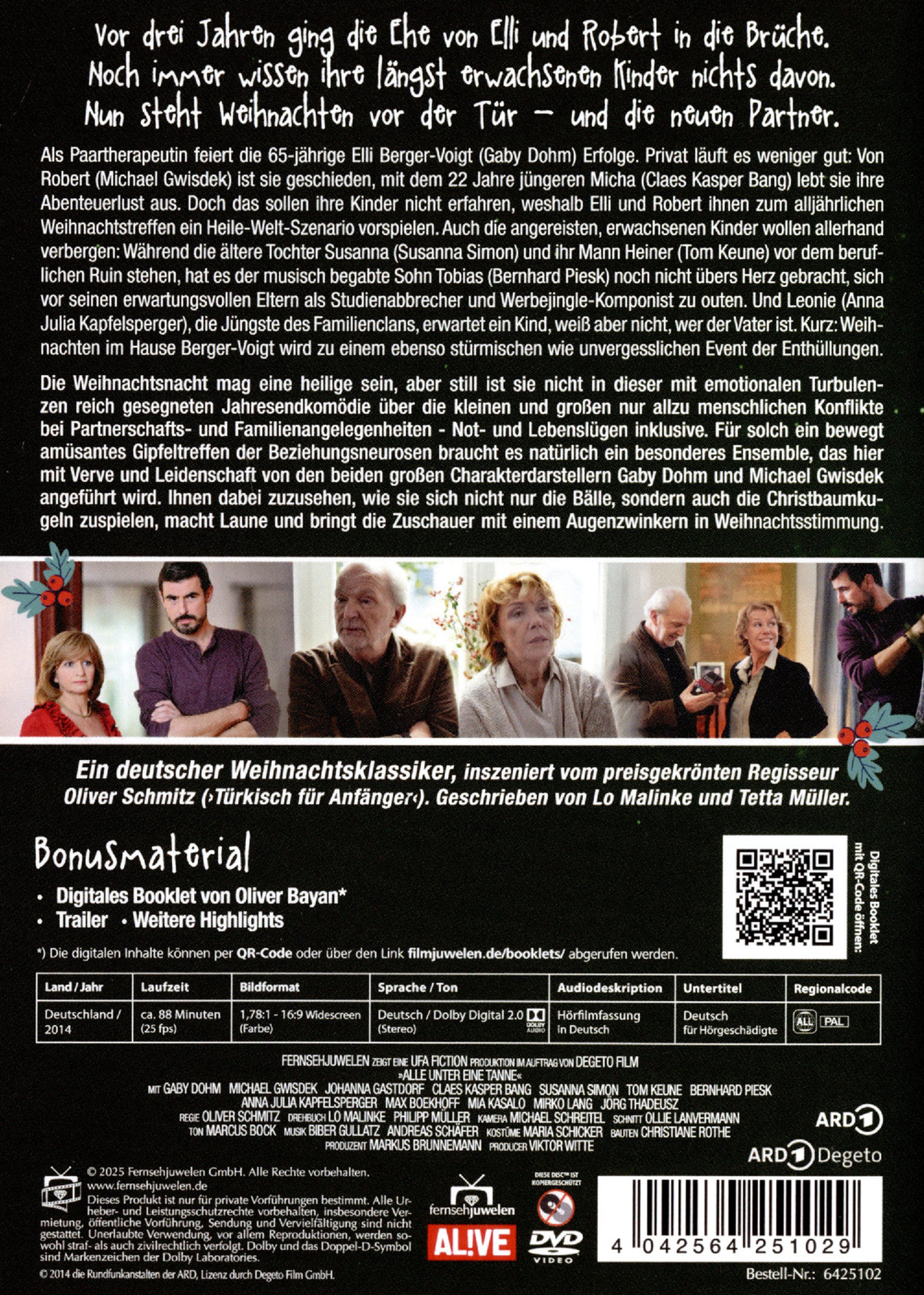 Die Weihnachtsnacht mag eine heilige sein, aber still ist sie nicht in dieser mit emotionalen Turbulenzen reich gesegneten Jahresendkomödie über die kleinen und großen nur allzu menschlichen Konflikte bei Partnerschafts- und Familienangelegenheiten - Not- und Lebenslügen inklusive. Für solch ein bewegt amüsantes Gipfeltreffen der Beziehungsneurosen braucht es natürlich ein besonderes Ensemble, das hier mit Verve und Leidenschaft von den beiden großen Charakterdarstellern Gaby Dohm und Michael Gwisdek angeführt wird. Ihnen dabei zuzusehen, wie sie sich nicht nur die Bälle, sondern auch die Christbaumkugeln zuspielen, macht Laune und bringt die Zuschauer mit einem Augenzwinkern in Weihnachtsstimmung.