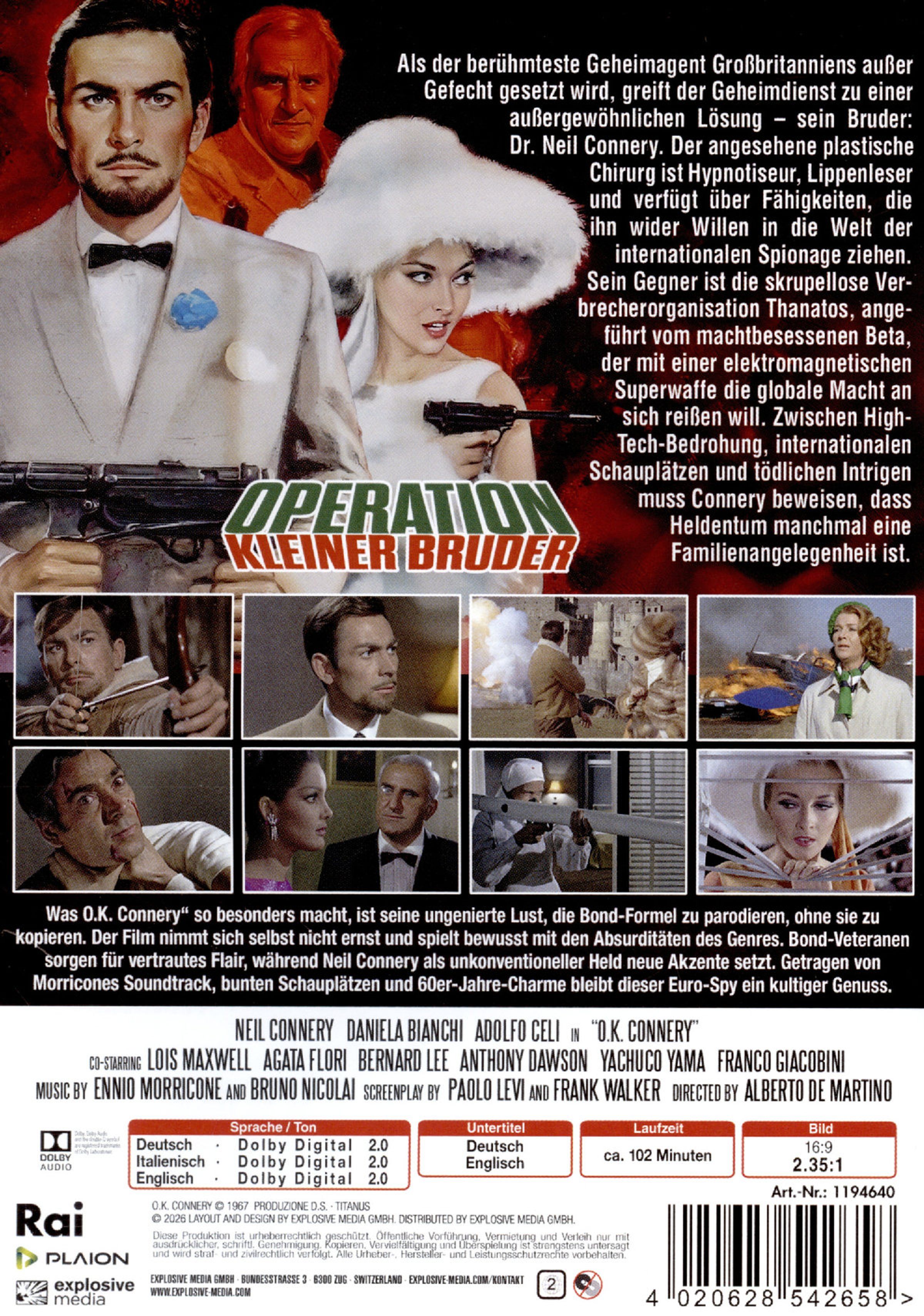 "Neil Connery, Daniela Bianchi, Adolfo Celi. 'Operation Kleiner Bruder'. Illustration zeigt Figuren in Action und Spannung.", DVD