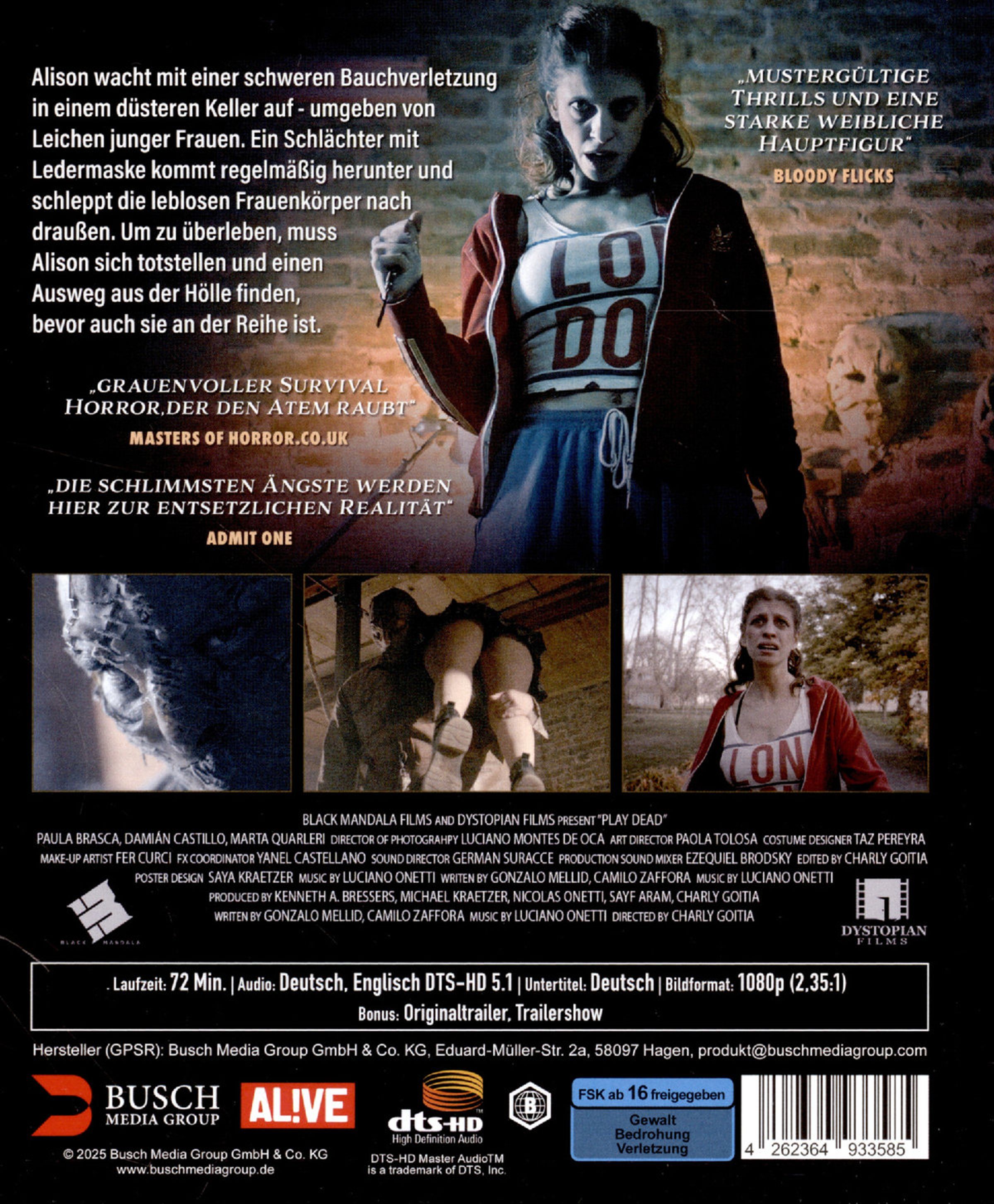 Alison wacht mit einer schweren Bauchverletzung in einem düsteren Keller auf - umgeben von Leichen junger Frauen. Ein Schlächter mit Ledermaske kommt regelmäßig herunter und schleppt die leblosen Frauenkörper nach draußen. Um zu überleben, muss Alison sich totstellen und einen Ausweg aus der Hölle finden, bevor auch sie an der Reihe ist.