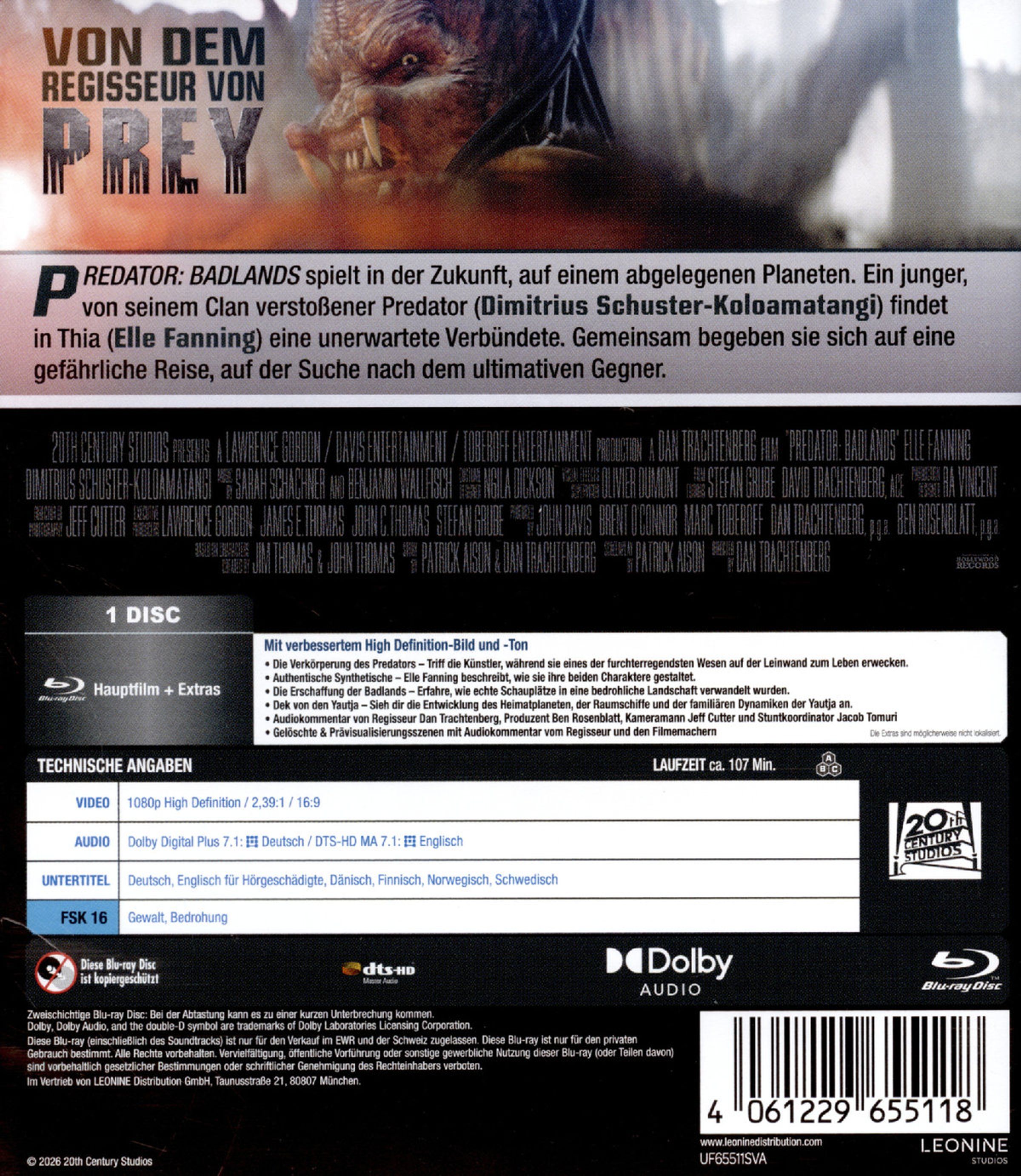 PREDATOR: BADLANDS spielt in der Zukunft, auf einem abgelegenen Planeten. Ein junger, von seinem Clan verstoßener Predator findet in Thia eine unerwartete Verbündete. Gemeinsam begeben sie sich auf eine gefährliche Reise, auf der Suche nach dem ultimativen Gegner.