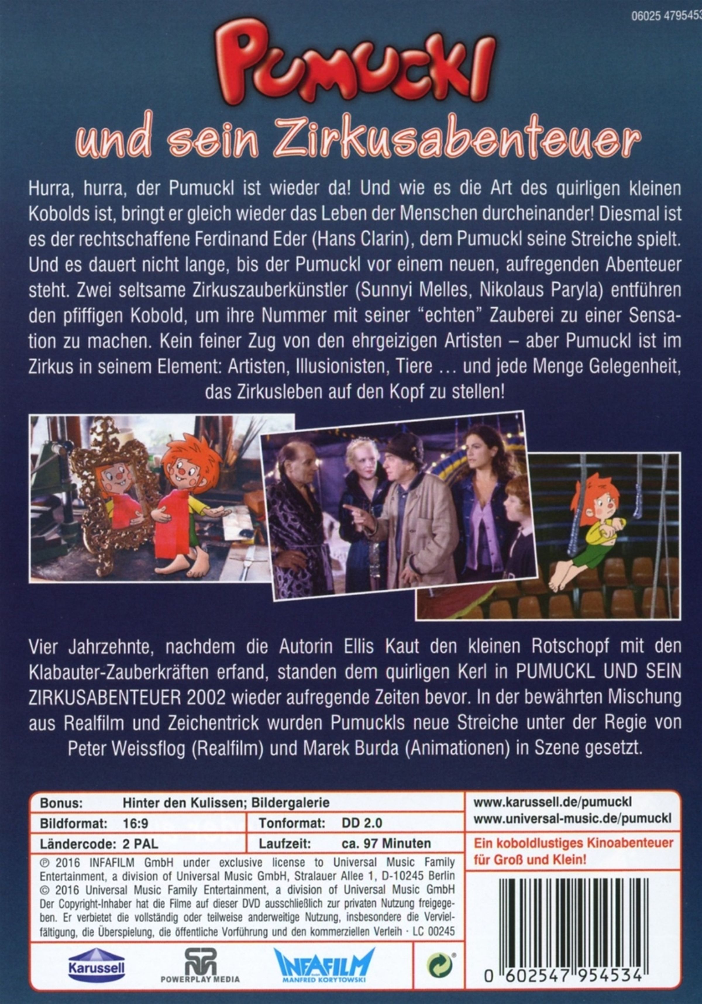 Vierzig Jahre, nachdem die Autorin Ellis Kaut den kleinen Rotschopf erfand, standen ihm im 2002 produzierten Kinofilm PUMUCKL UND SEIN ZIRKUSABENTEUER wieder aufregende Zeiten bevor. In der bewährten Mischung aus Realfilm und Zeichentrick wurden Pumuckls neue Streiche unter der Regie von Peter Weissflog in Szene gesetzt. Ein koboldlustiges Kinoabenteuer für Groß und Klein!