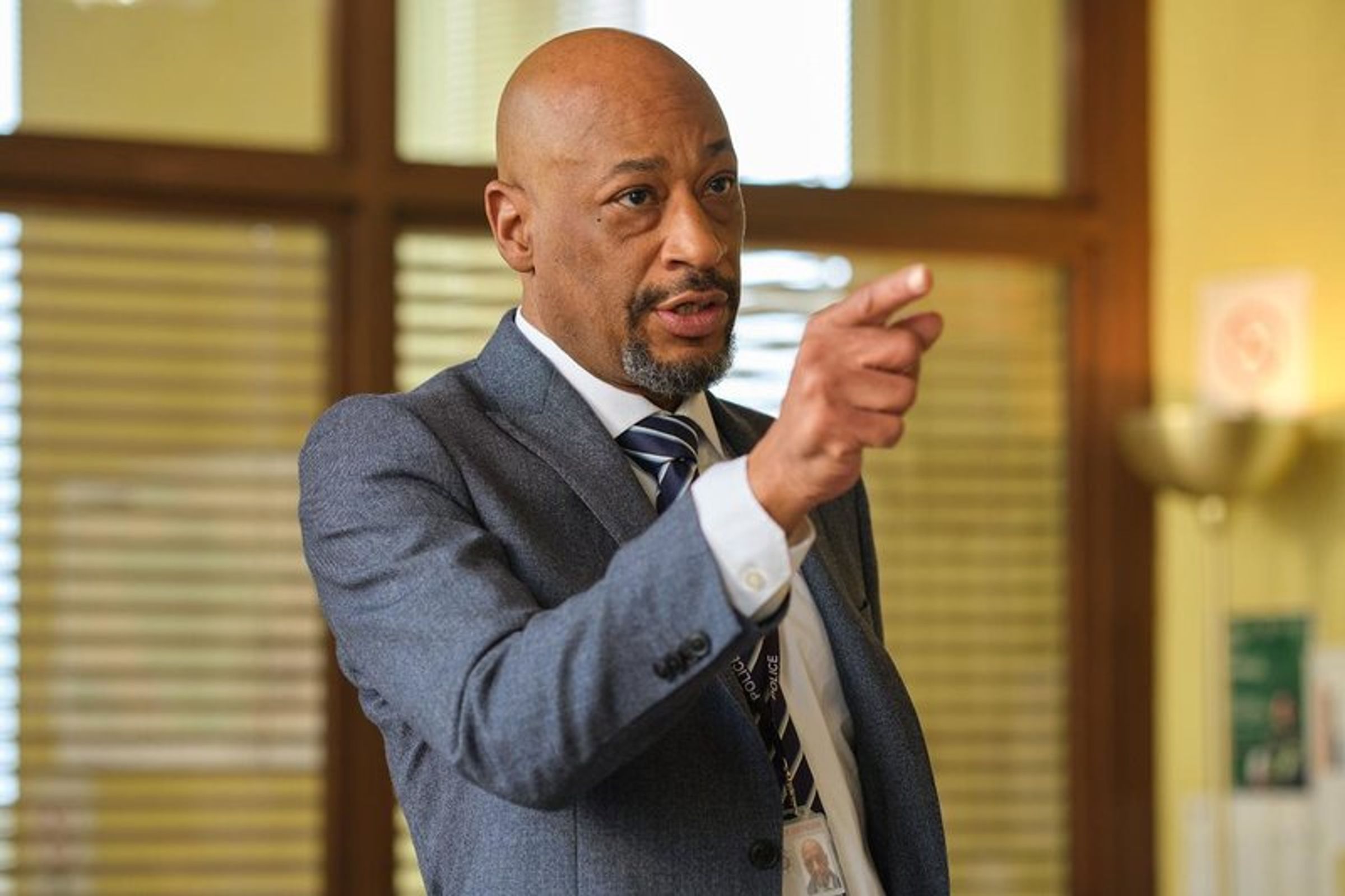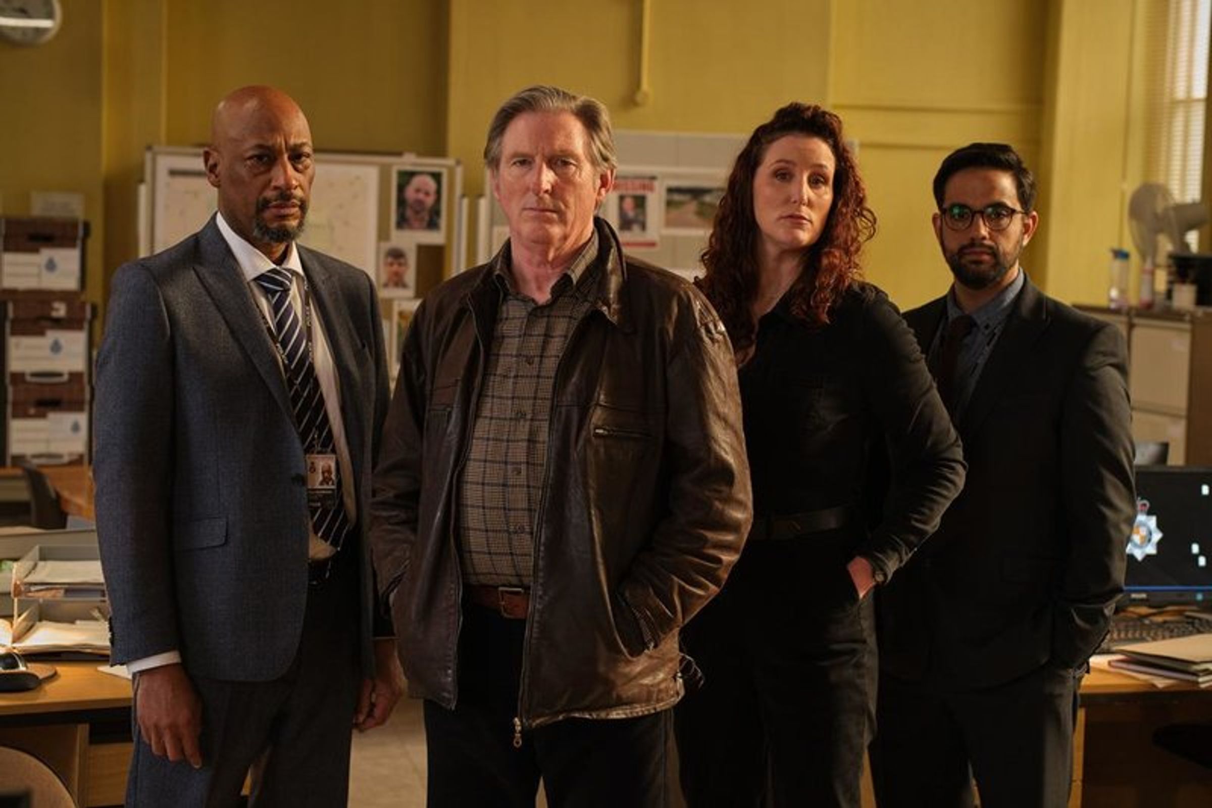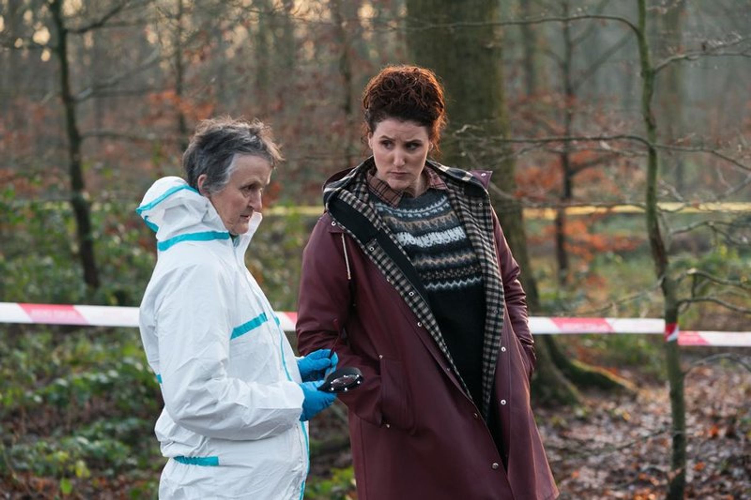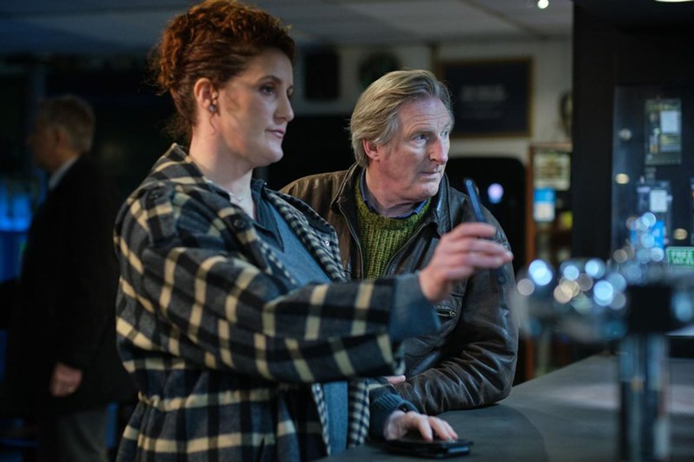 "STAFFEL 1", "ADRIAN DUNBAR", "RIDLEY", FSK 12. Ein Mann in Lederjacke steht vor einem Polizeiauto bei Nacht., DVD