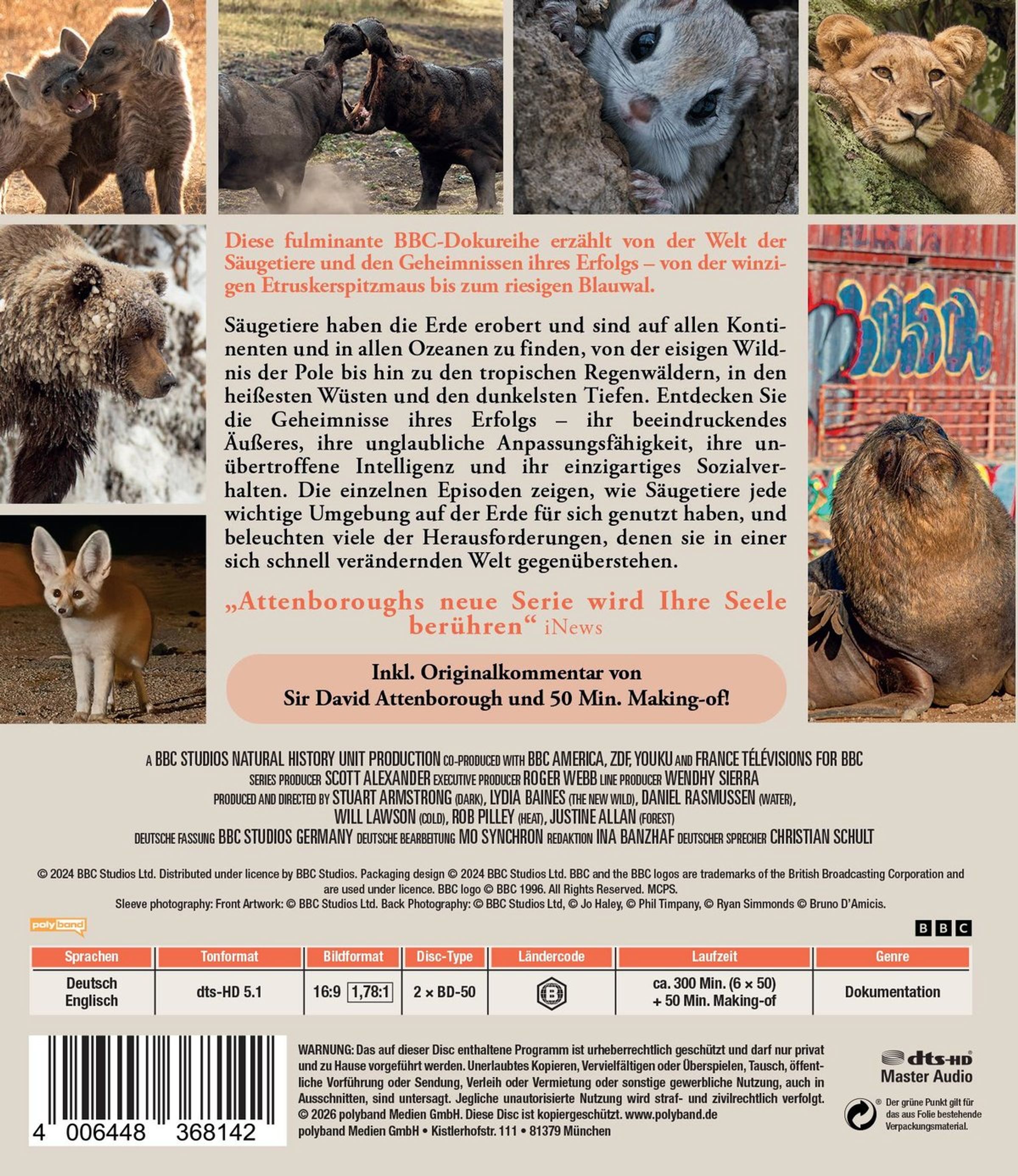 Die einzelnen Episoden zeigen, wie Säugetiere jede wichtige Umgebung auf der Erde für sich genutzt haben und beleuchtet viele der Herausforderungen, denen sie in einer sich schnell verändernden Welt gegenüberstehen.