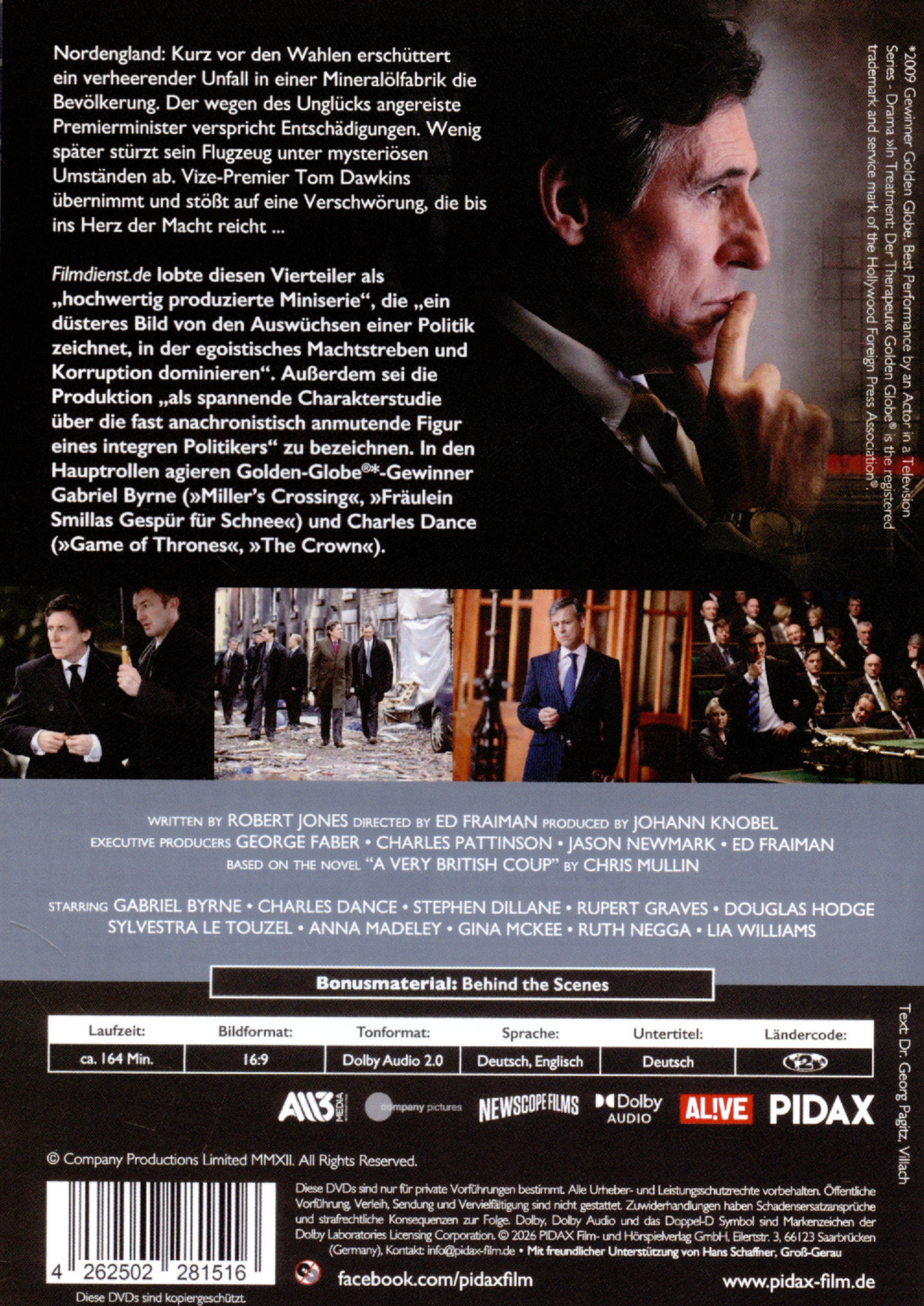 Nordengland: Kurz vor den Wahlen erschüttert ein verheerender Unfall in einer Mineralölfabrik die Bevölkerung. Der wegen des Unglücks angereiste Premierminister verspricht Entschädigungen. Wenig später stürzt sein Flugzeug unter mysteriösen Umständen ab. Vize-Premier Tom Dawkins übernimmt und stößt auf eine Verschwörung, die bis ins Herz der Macht reicht ...