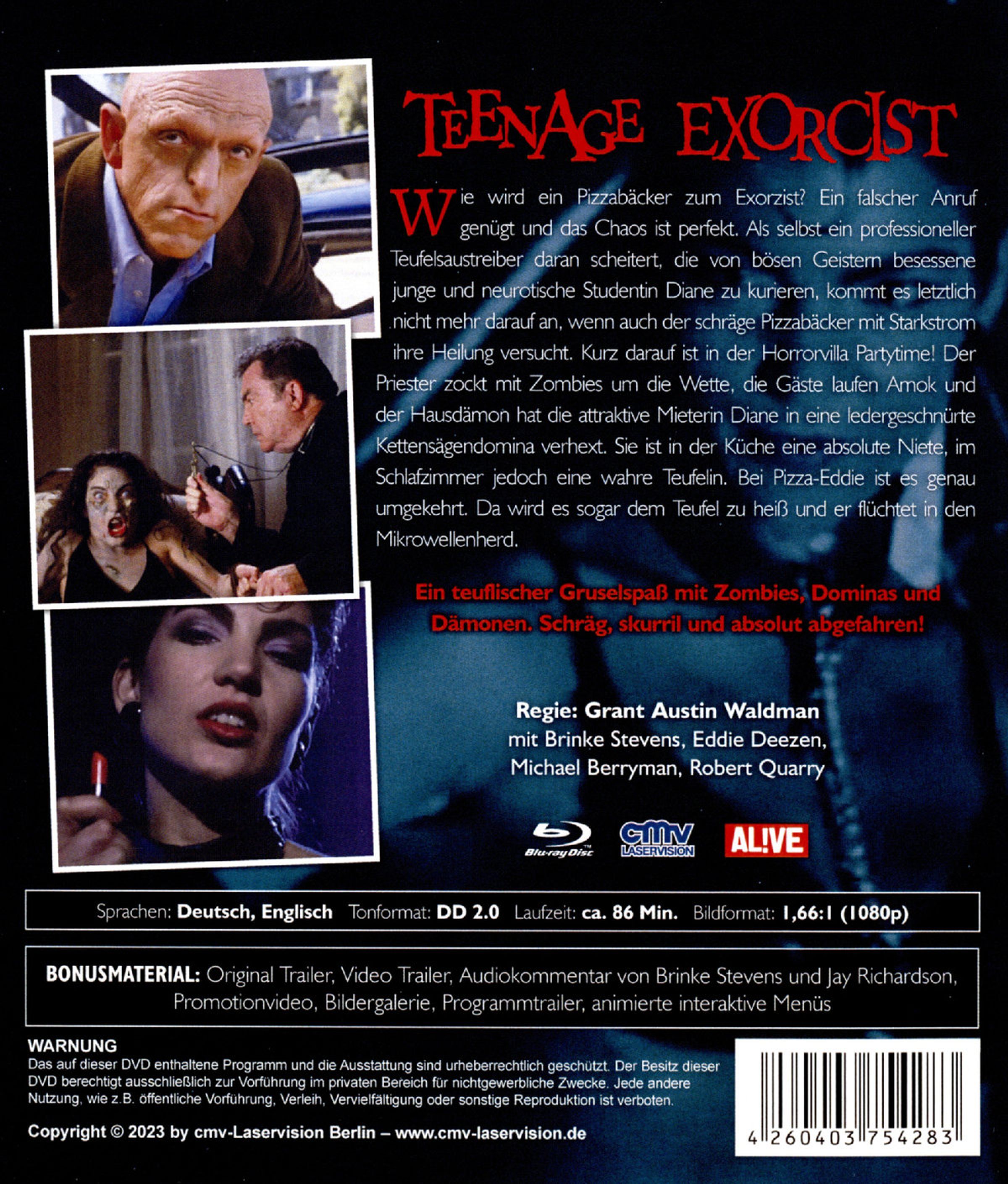 Wie wird ein Pizzabäcker zum Exorzisten? Ein falscher Anruf genügt, und das Chaos ist perfekt. Als selbst ein professioneller Teufelsaustreiber daran scheitert, die von bösen Geistern besessene junge und neurotische Studentin Diane zu kurieren, kommt es letztlich nicht mehr darauf an, wenn auch der schräge Pizzabäcker mit Starkstrom ihre Heilung versucht. Kurz darauf ist in der Horrorvilla Partytime! Der Priester zockt mit Zombies um die Wette, die Gäste laufen Amok, und der Hausdämon hat die attraktive Mieterin Diane in eine ledergeschnürte Kettensägendomina verhext. Sie ist in der Küche eine absolute Niete, im Schlafzimmer jedoch eine wahre Teufelin. Bei Pizza-Eddie ist es genau umgekehrt. Da wird es sogar dem Teufel zu heiß, und er flüchtet in den Mikrowellenherd. Ein teuflischer Gruselspaß mit Zombies, Dominas und Dämonen. Schräg, skurril und absolut abgefahren!