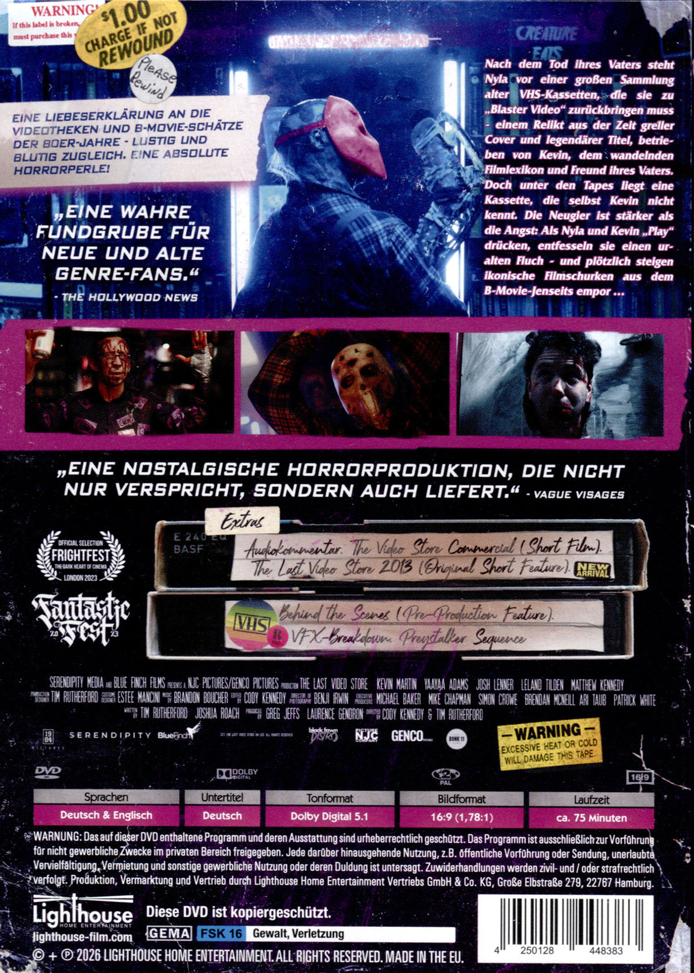 Als ihr entfremdeter Vater stirbt, soll die 20-jährige Nyla sein Chaos beseitigen. Zwischen alten VHS-Tapes entdeckt sie eine Kassette, die selbst Videothekenbesitzer Kevin nicht kennt. War es der letzte Film ihres Vaters? Trotz Warnungen drücken sie »Play« - und entfesseln einen uralten Fluch. Kult-Schurken steigen aus dem B-Movie-Jenseits empor - darunter Jason aus Freitag, der 13.!