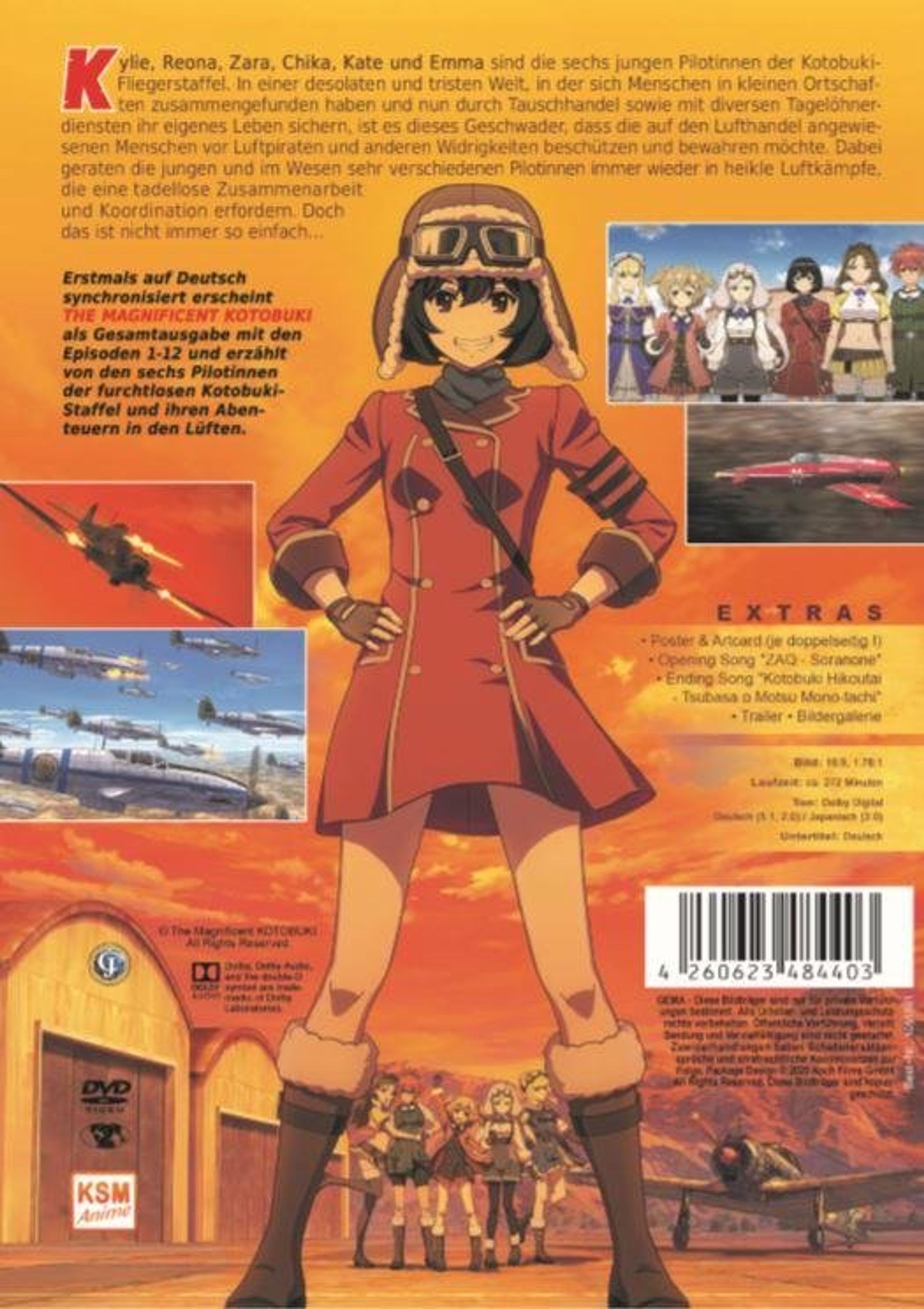 Erstmals auf Deutsch synchronisiert erscheint THE MAGNIFICENT KOTOBUKI als Gesamtausgabe mit den Episoden 1-12 und erzählt von den sechs Pilotinnen der furchtlosen Kotobuki-Staffel und ihren Abenteuern in den Lüften.
